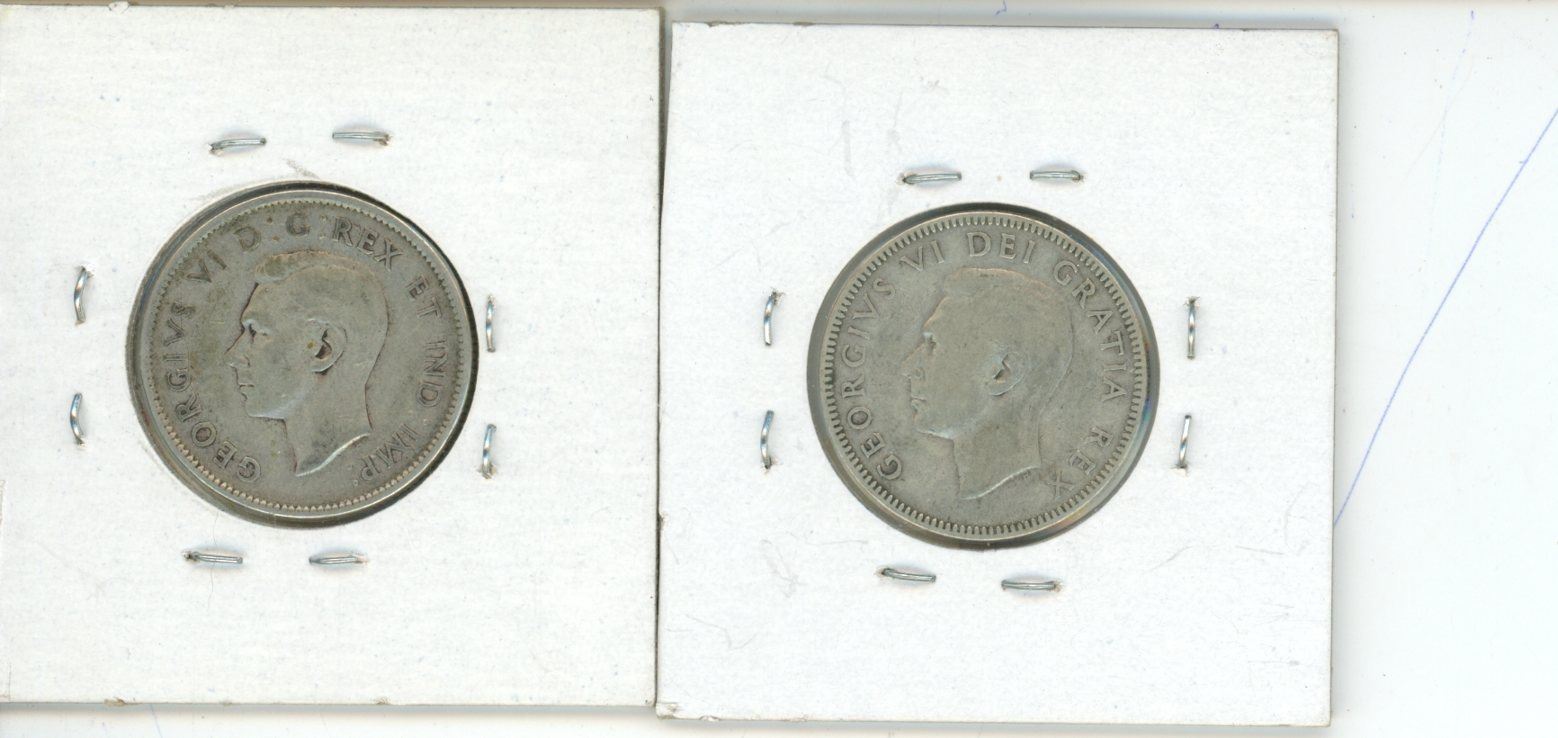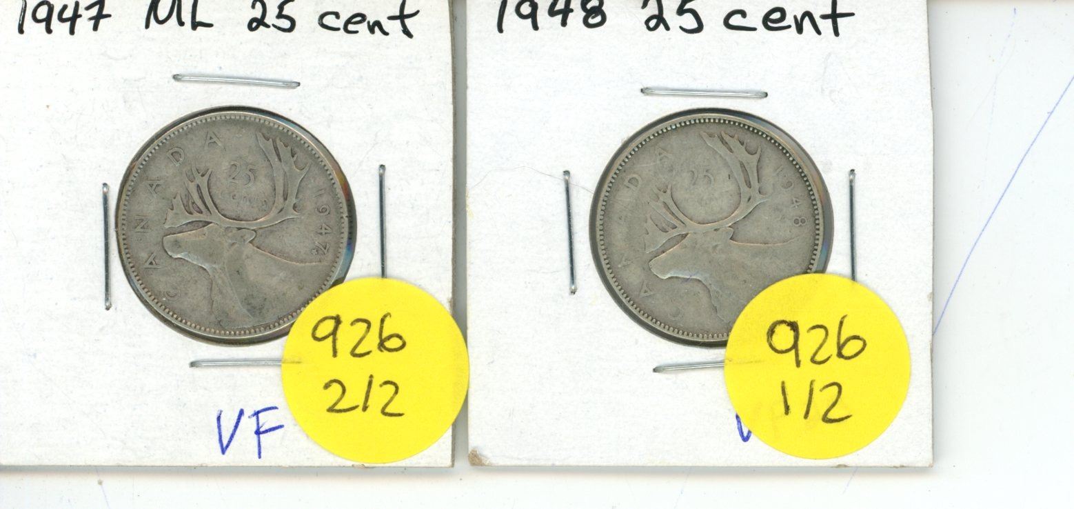 2x Canadian 25 cent coins 1947, 1948