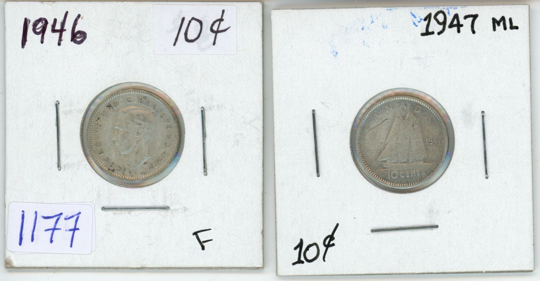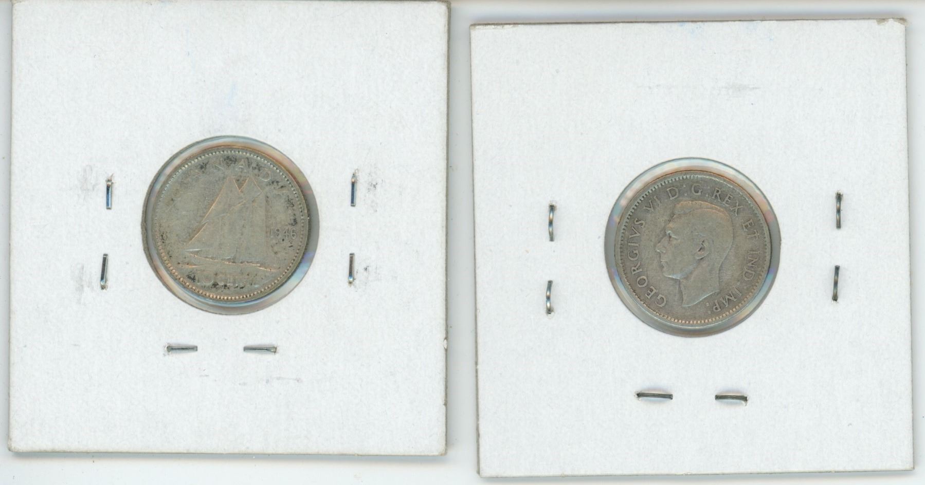 2x - Canadian silver 10 cent coins - 1946-47