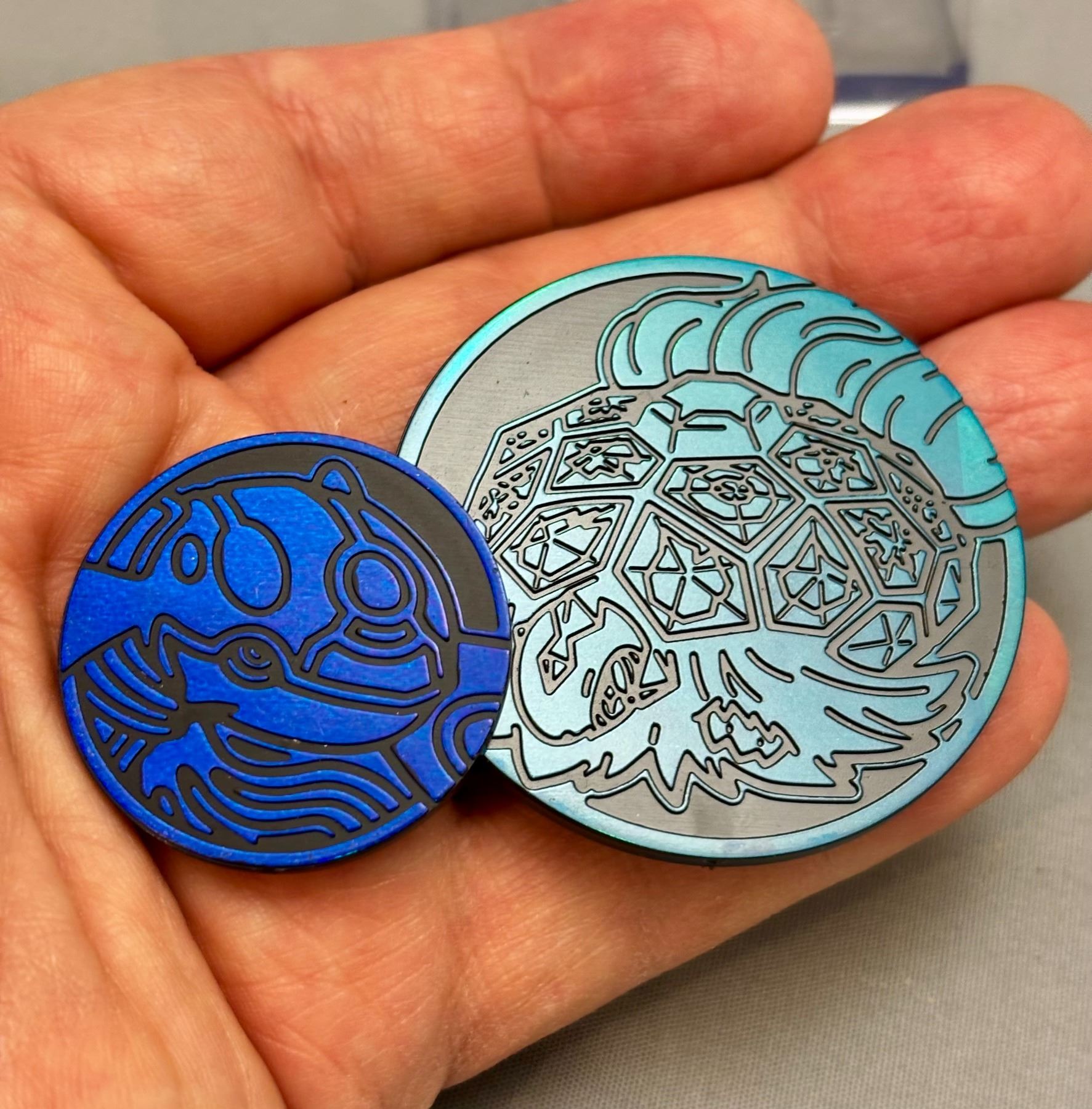2x Pokemon Coins Bkue Kyogre & Indigo Lrg Disk Scarlet & Violet Sky
