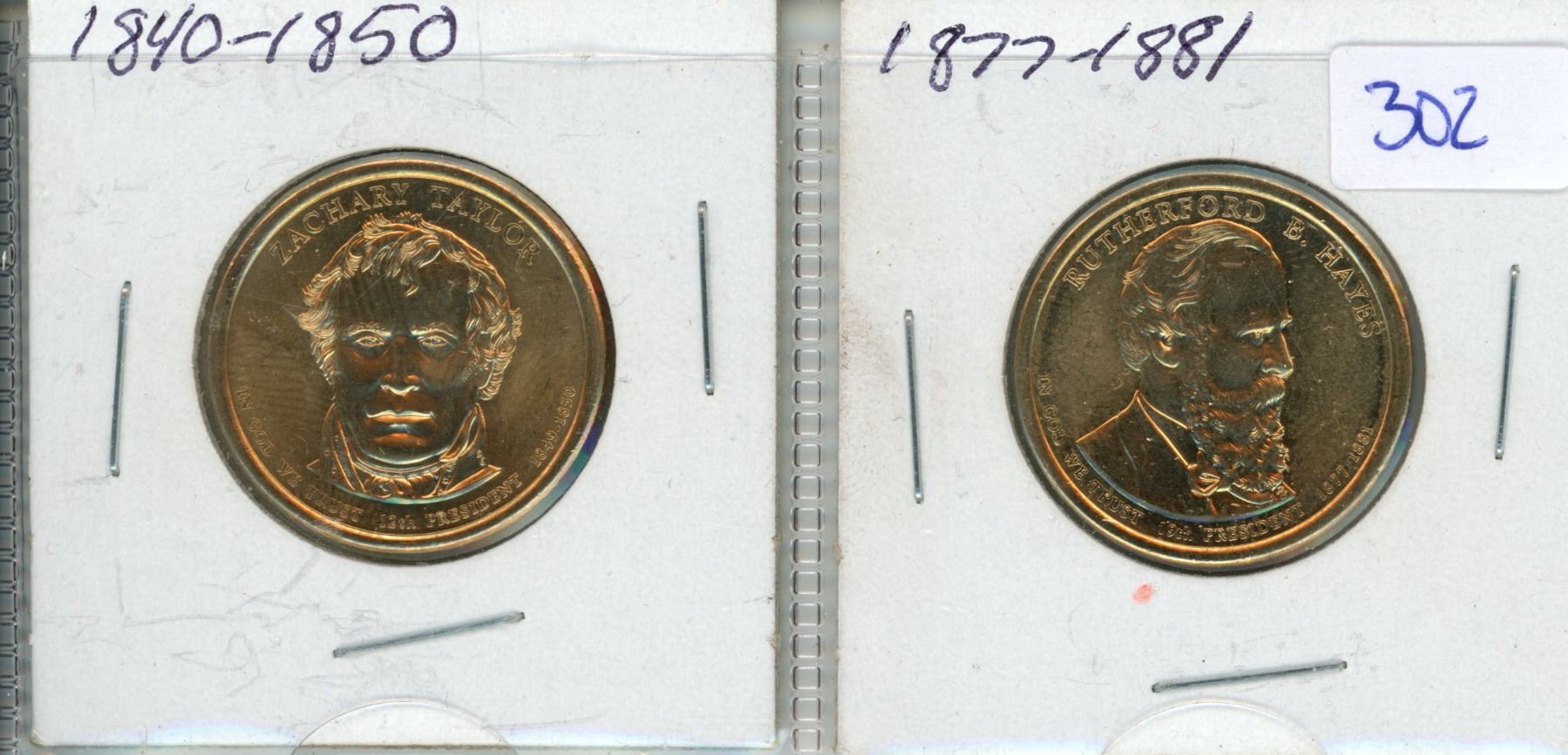 2x USA prsidential $1 coins - Zachary Taylor 1849-1850 and Rutherford B. Hayes 1877-1881