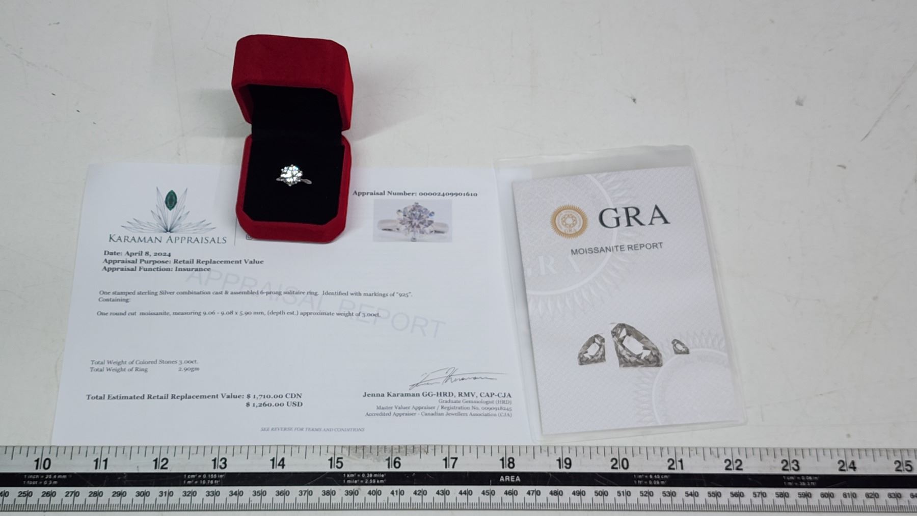 3.00 CT - Size 7 - GRA CERTIFIED ROUND BRILLIANT CUT MOISSANITE VVS D COLOR SET IN 6 CLAW HEAD SET IN 925 STERLING SILVER RETAIL VALUE $1,710.00