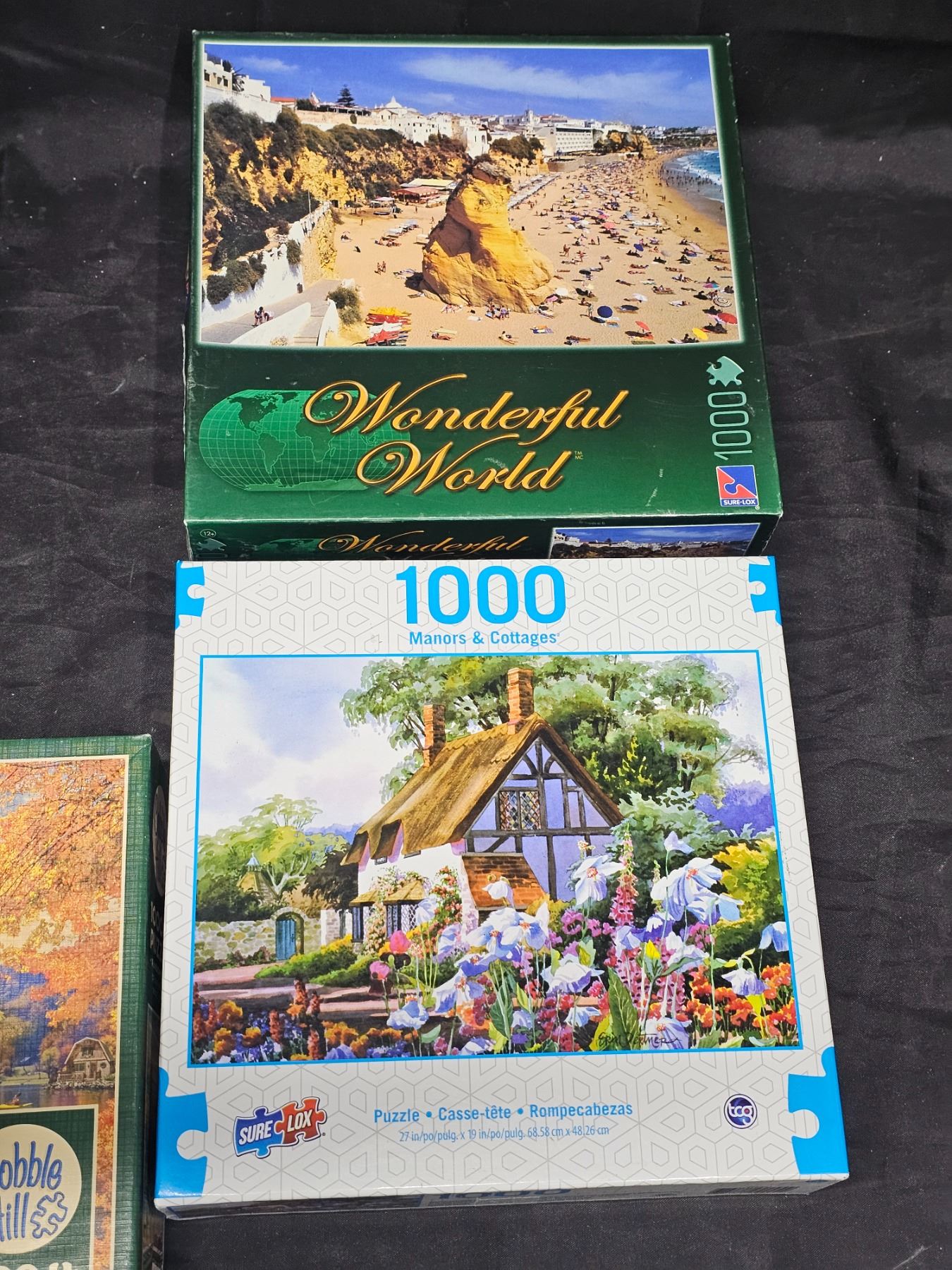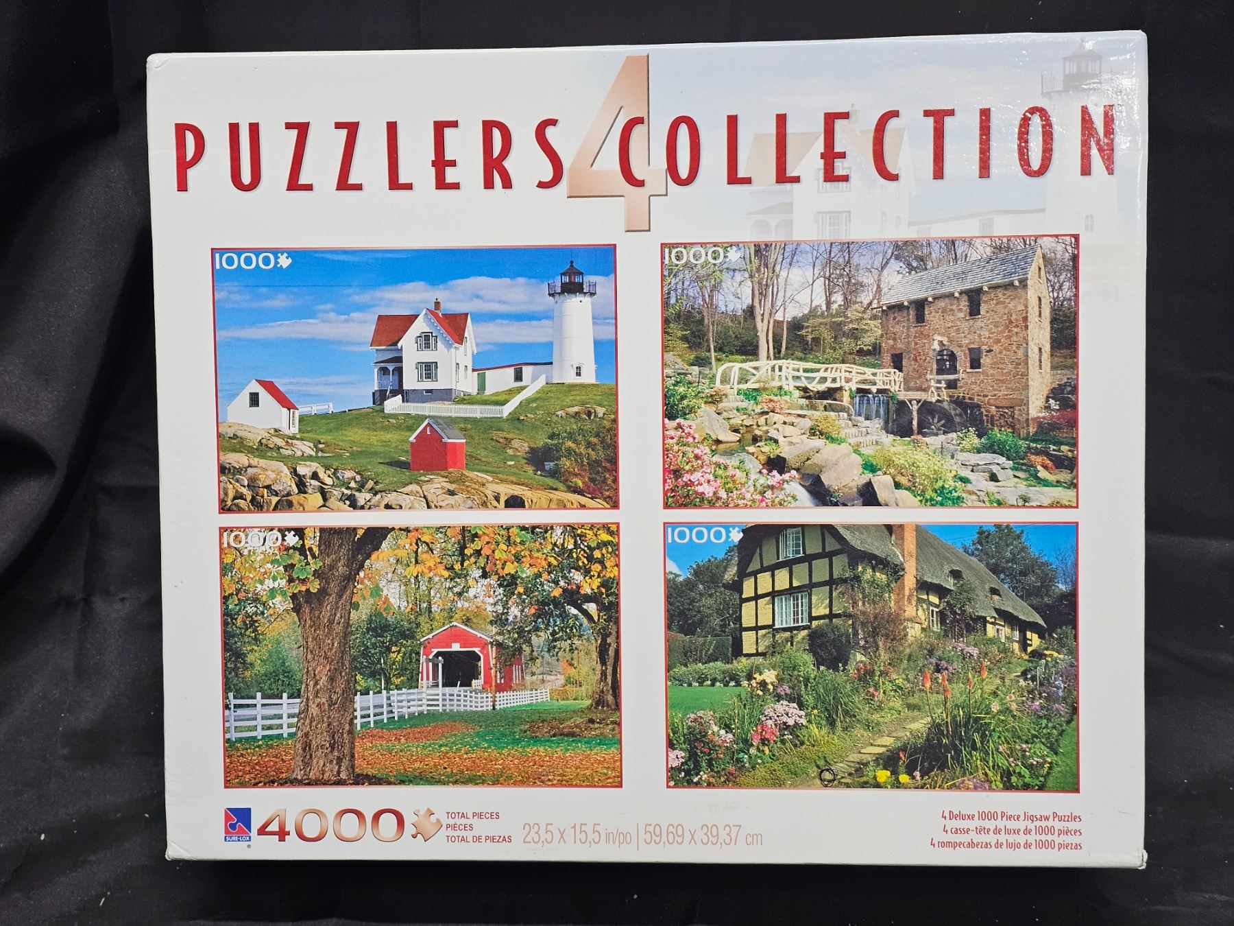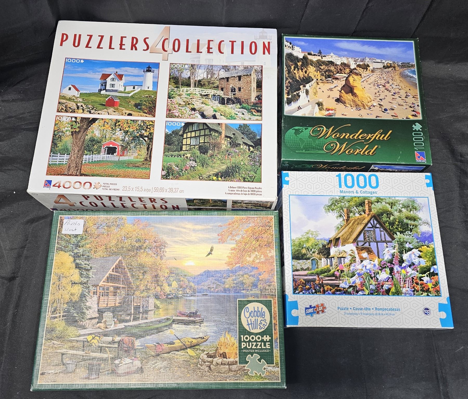 (3) 1000 Piece Jigsaw Puzzles, (1) Box of 4 Deluxe 1000 Piece Jigsaw Puzzles
