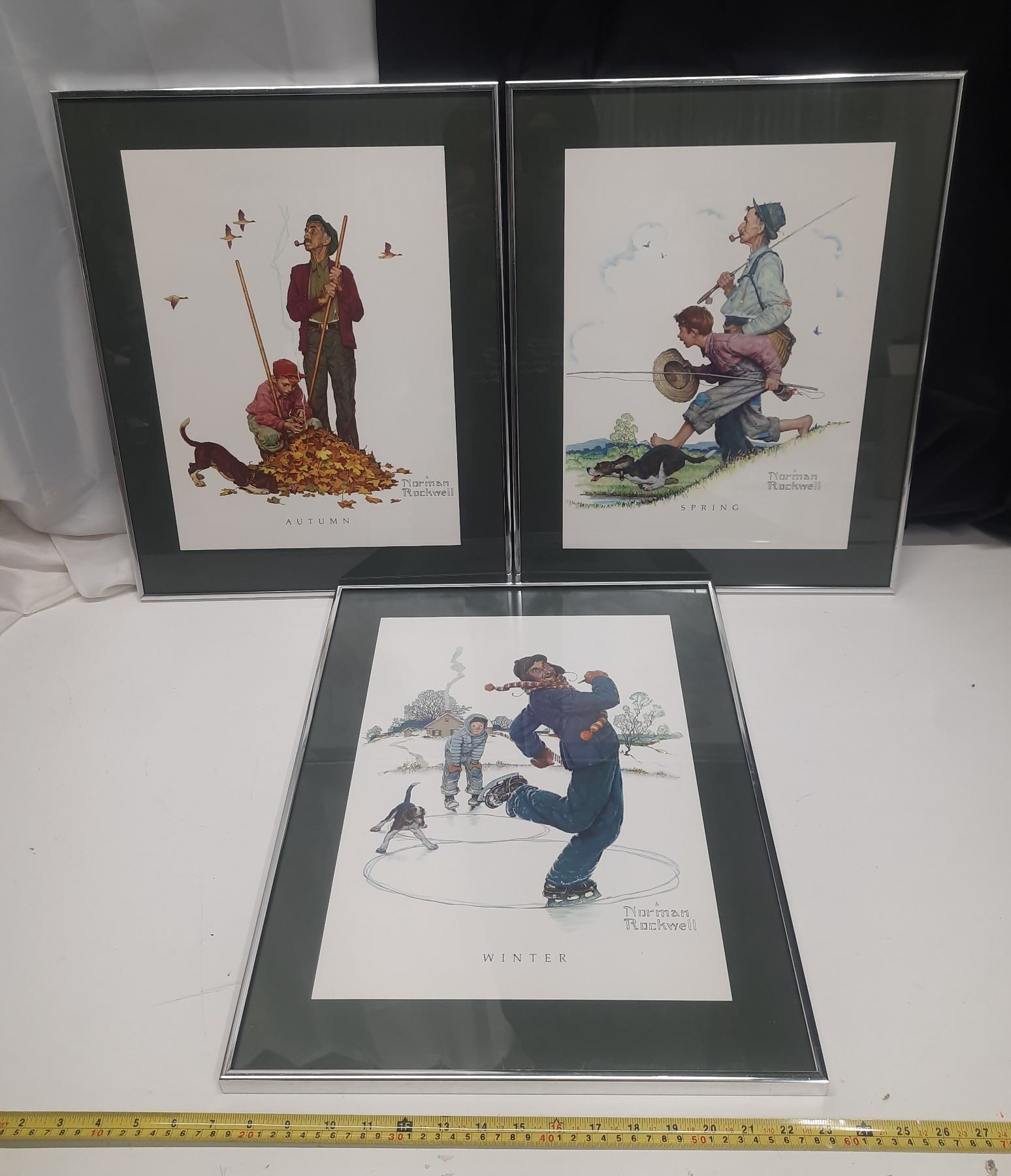 (3) 16 X 20 FRAMED NORMAN ROCKWELL PRINTS WINTER, SPRING, AUTUMN