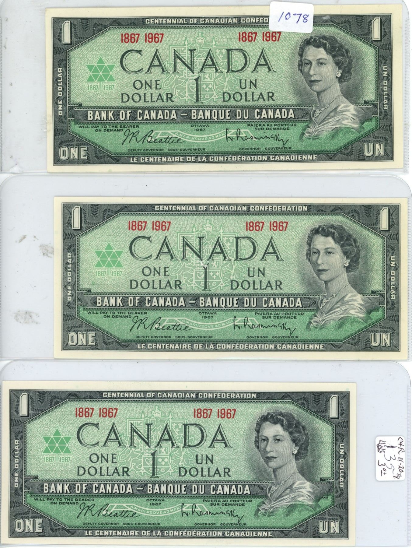 3 - 1867-1967 UNC $1 Bills