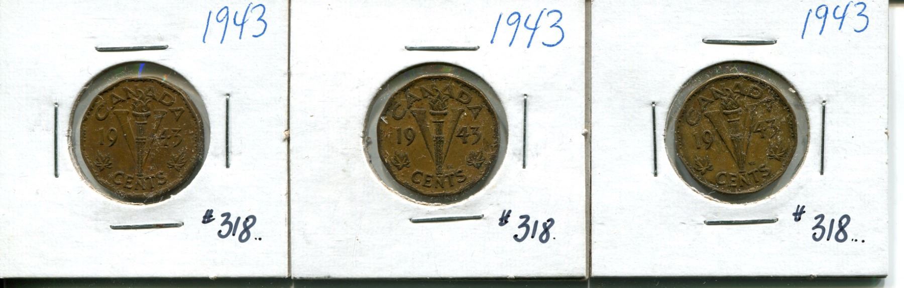 3 1943 tombac 5 cents