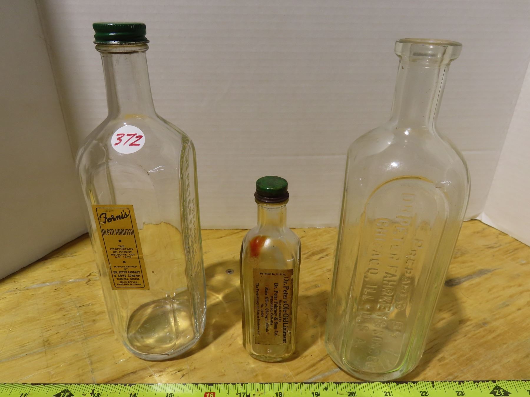 3 1949 Dr Peter Fahrney & sons Co. bottle with paper labels and caps (Rare)
