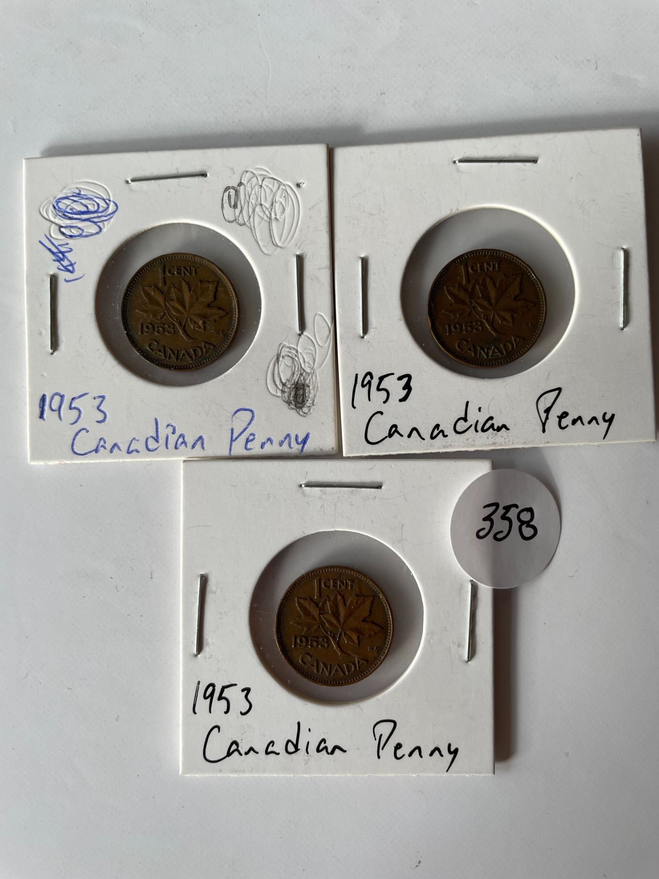 3 1953 Canadian pennies