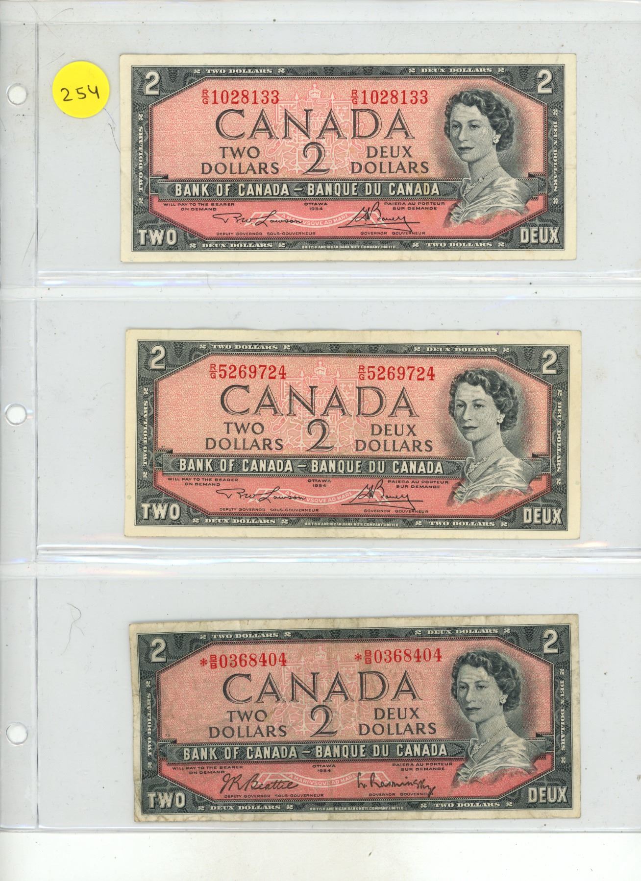 (3) 1954 Canada Two Dollars.