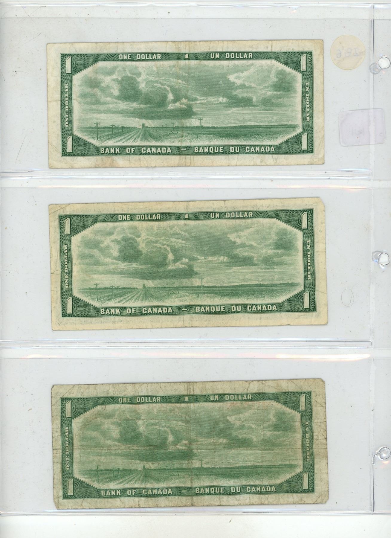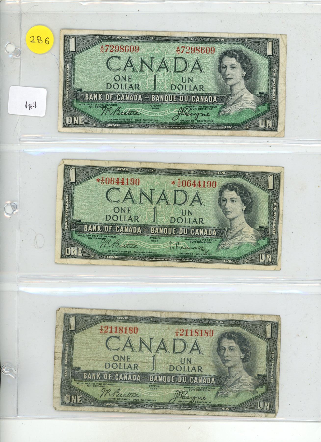 (3) 1954 Canadian One Dollar.