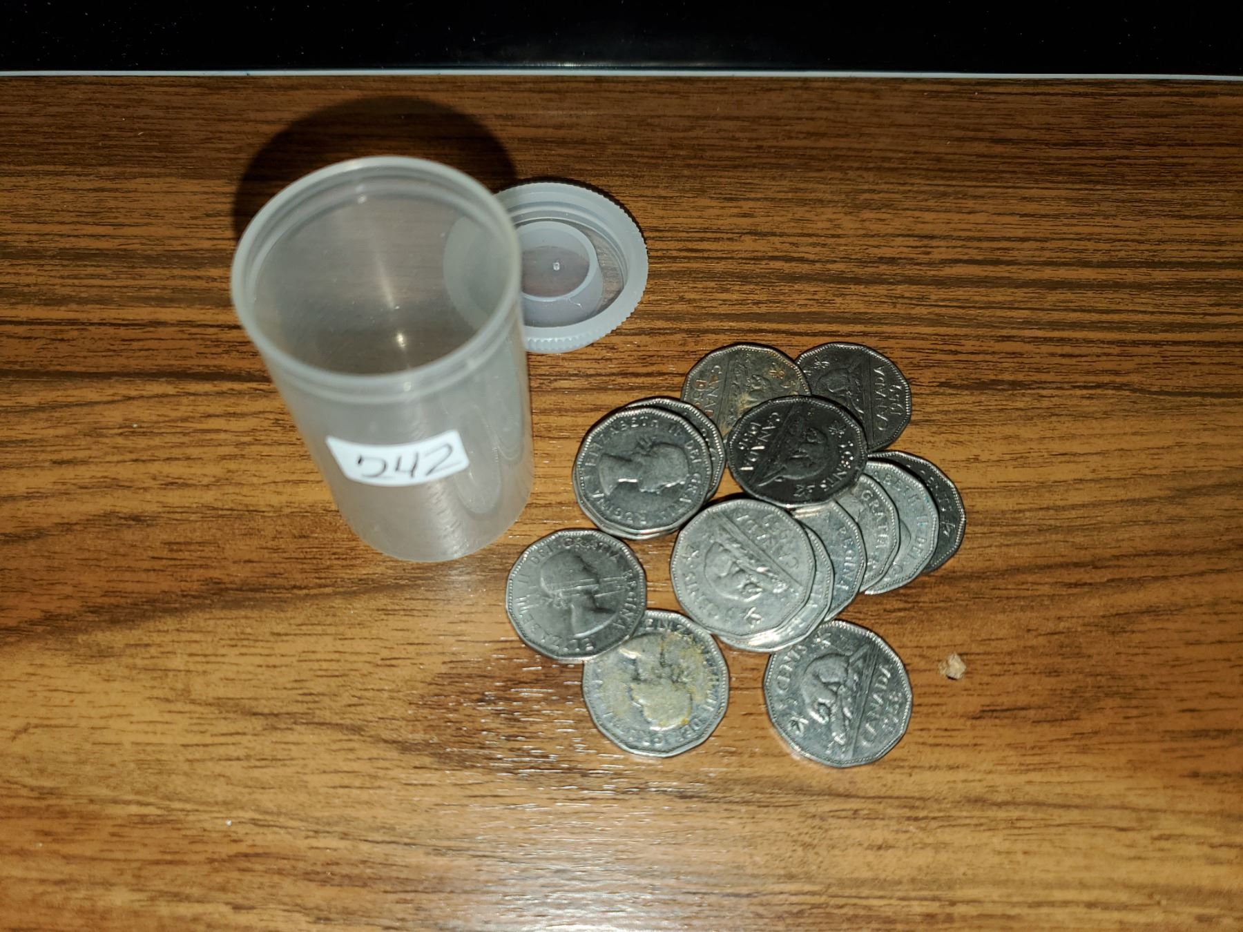 3-1956, 1-1957, 6-1958, 5-1959 nickels,15-Canadian 5 cent coins,Queen Elizabeth II