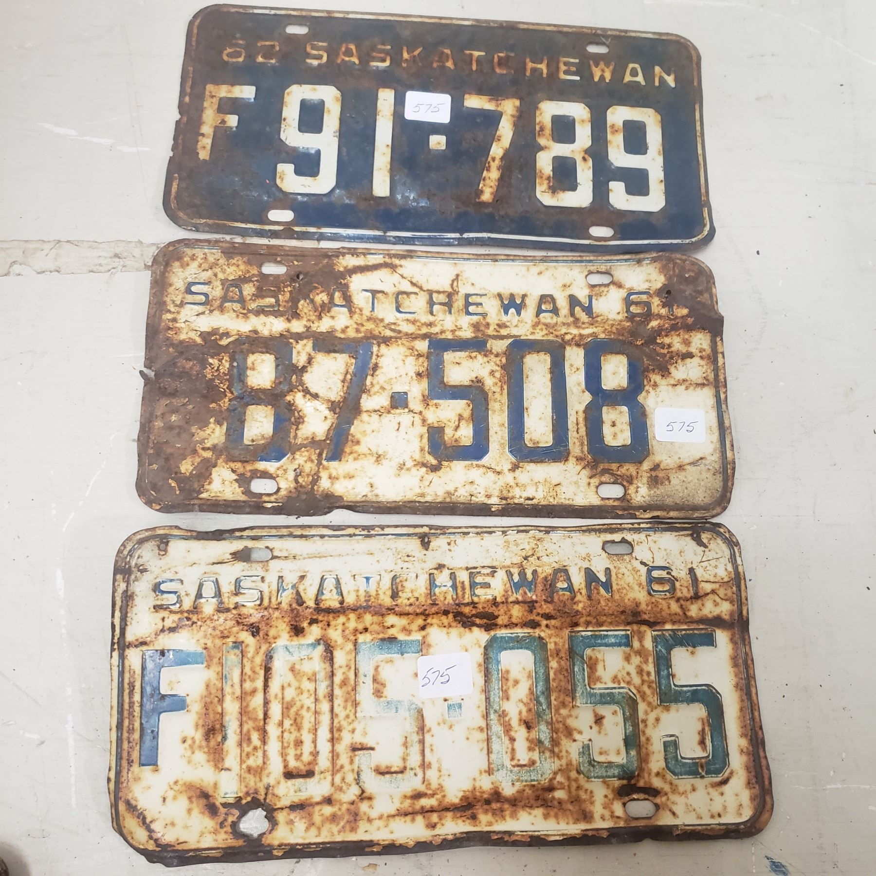 (3) 1961 x2 and a 1962 Saskatchewan Liscence Plate vintage original Sask plate