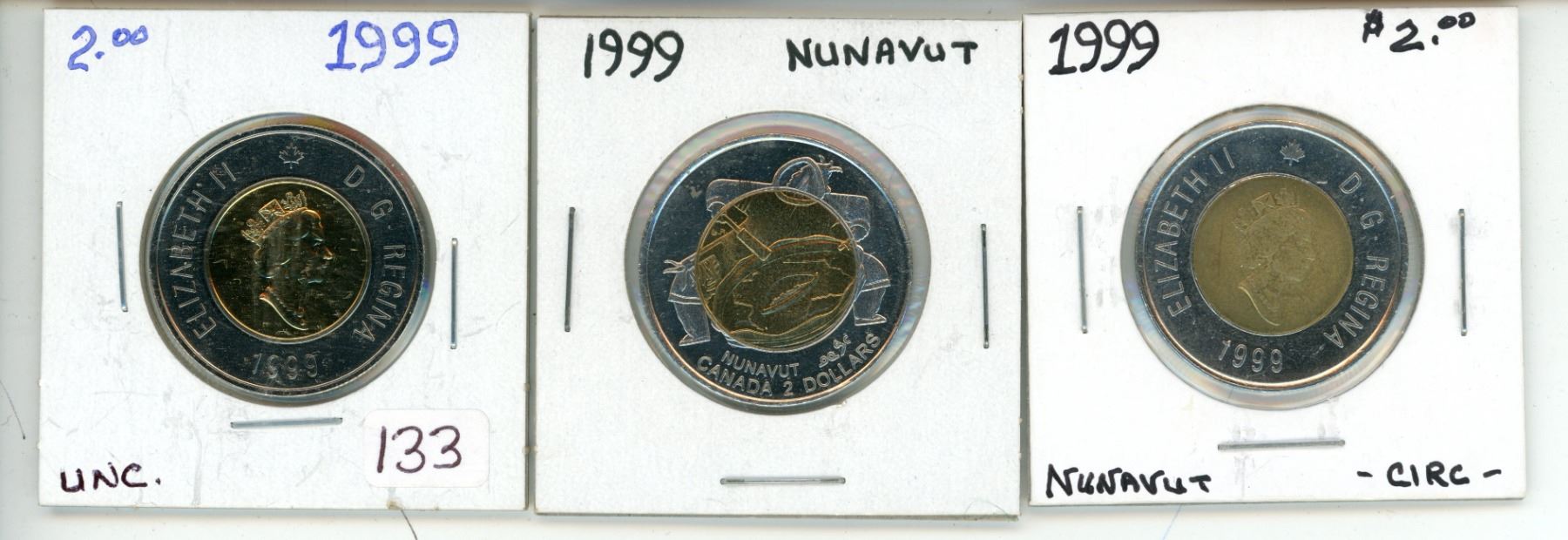 3 - 1999 Canadian toonie 2 dollar coins