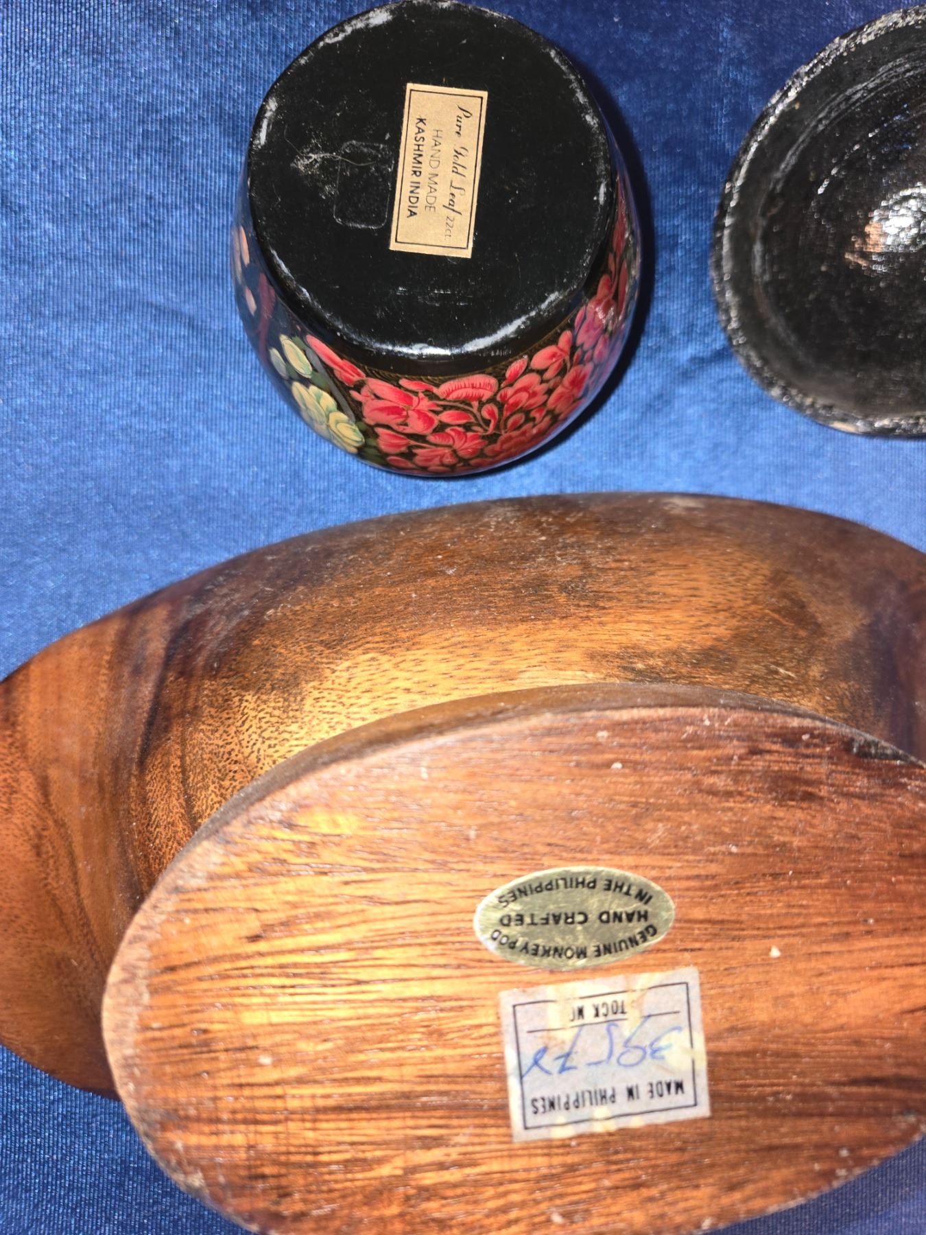 3. 2 handmade wood pieces 1 Philippines 1 India