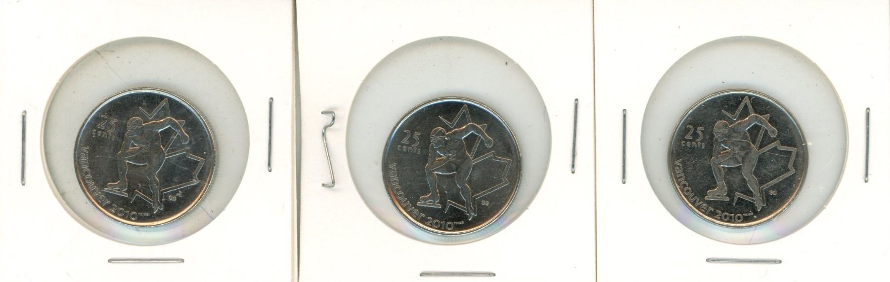 (3) 2010 Canada Vancouver 25 Cents Coin.