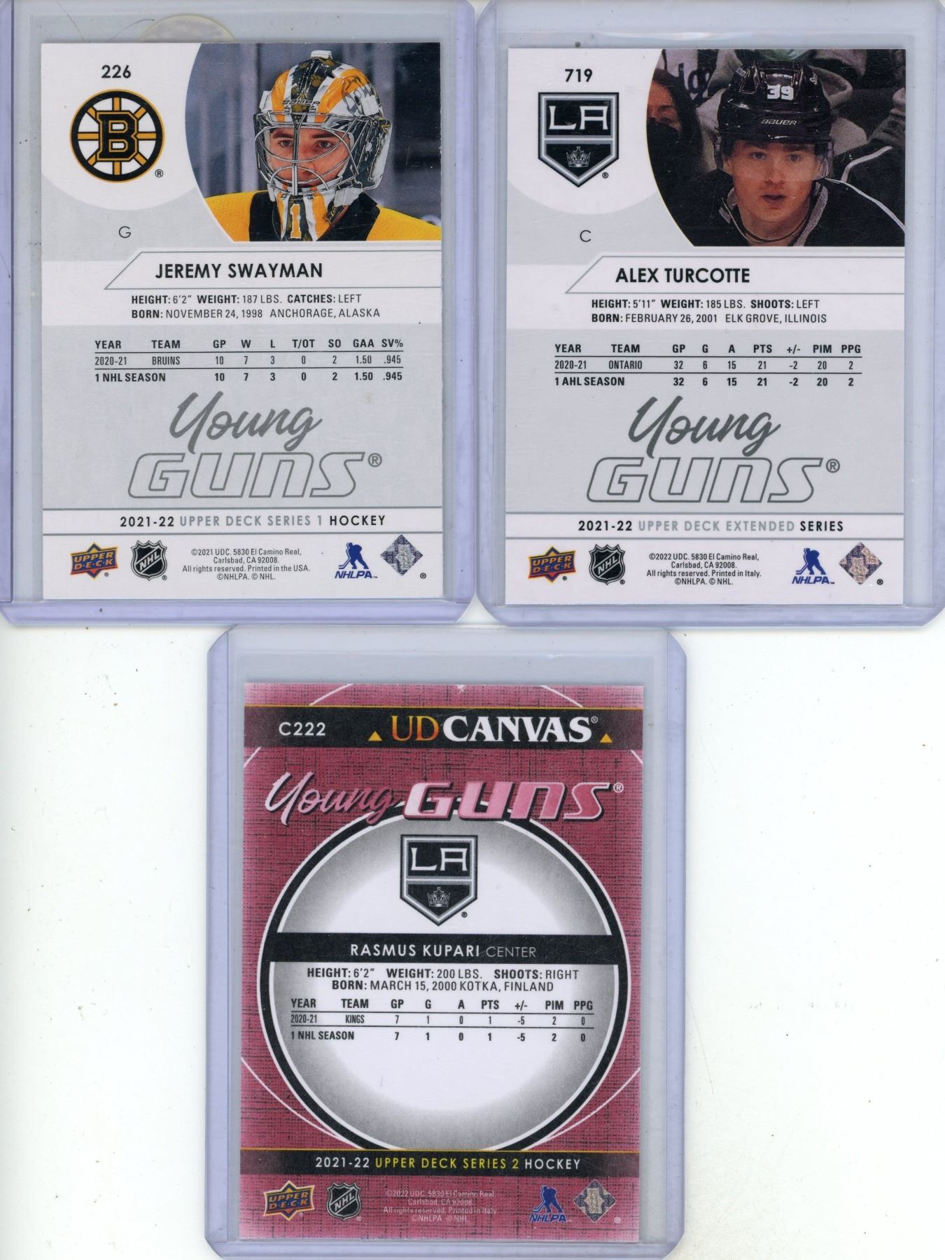 (3) 2021-22 Upper Deck Series 1 Hockey - Young Guns Cards.