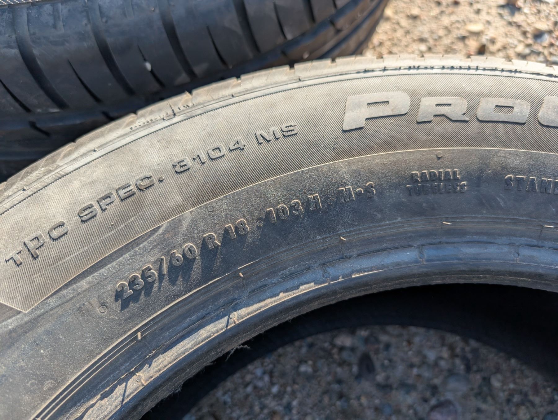 (3) 25,000KM Used Continental 235/60 R18.103H Tires and (1) Couragia Spare (Good Condition)