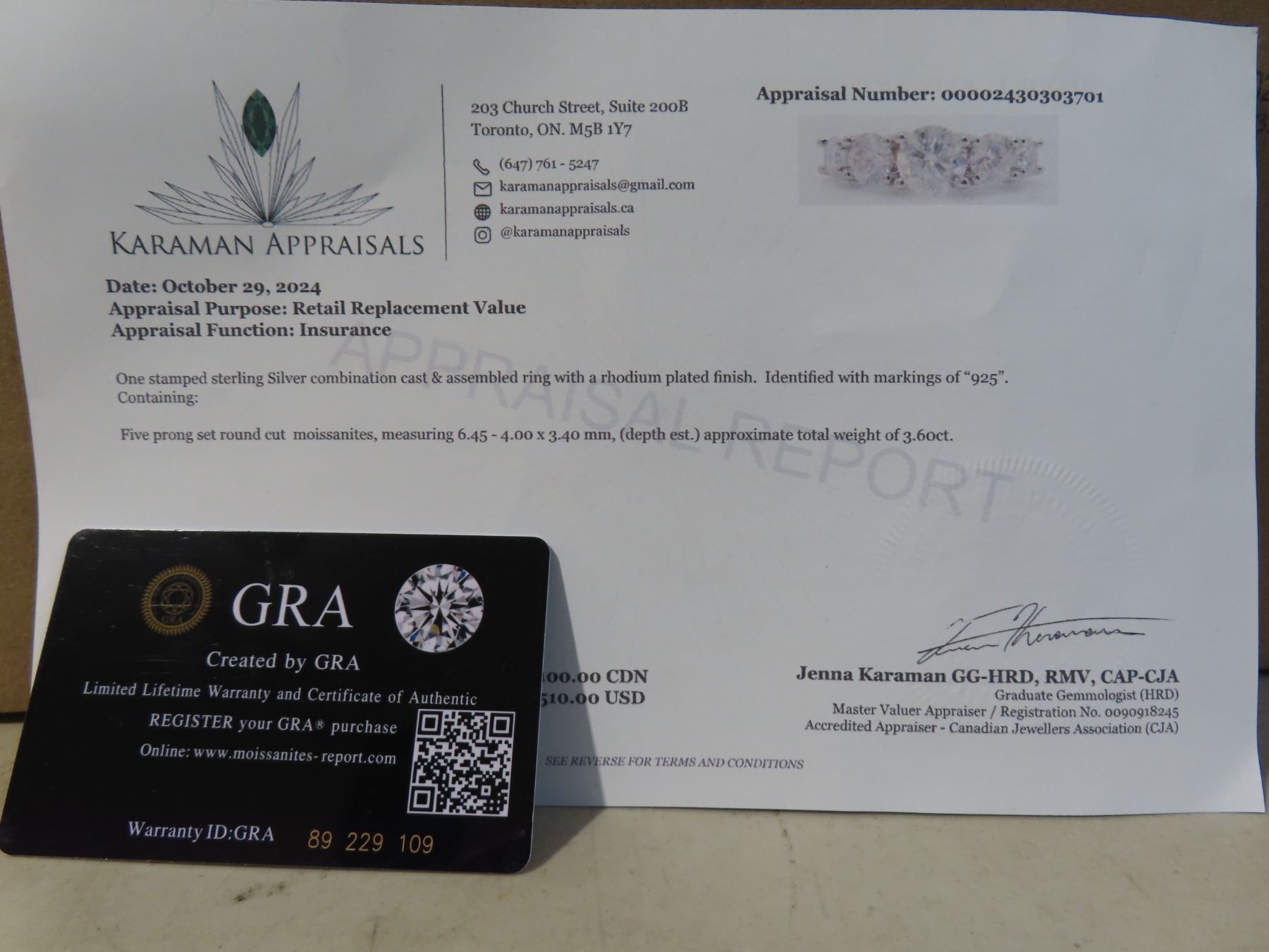 3.60 CT TW GRA CERTIFIED ROUND BRILLIANT CUT MOISSANITE VVS D COLOR SET IN 925 SILVER RING RETAIL VALUE $2,100.00