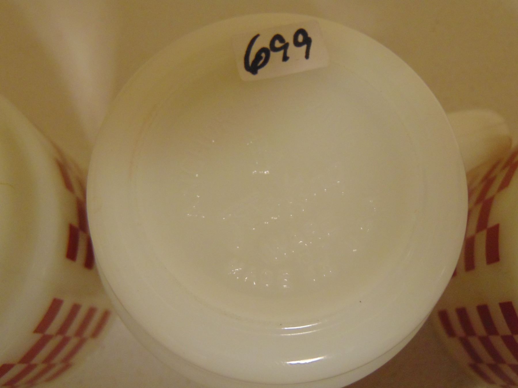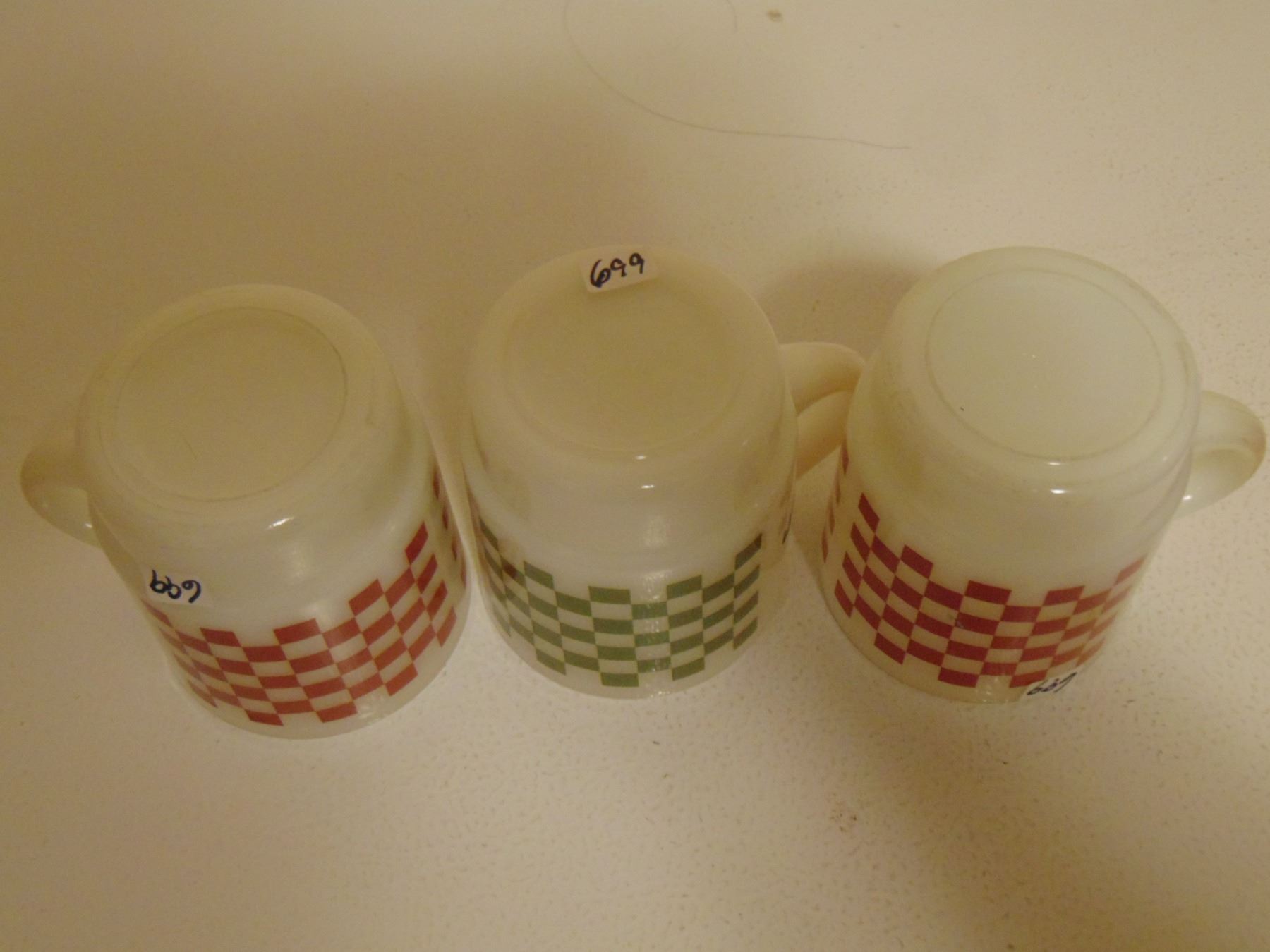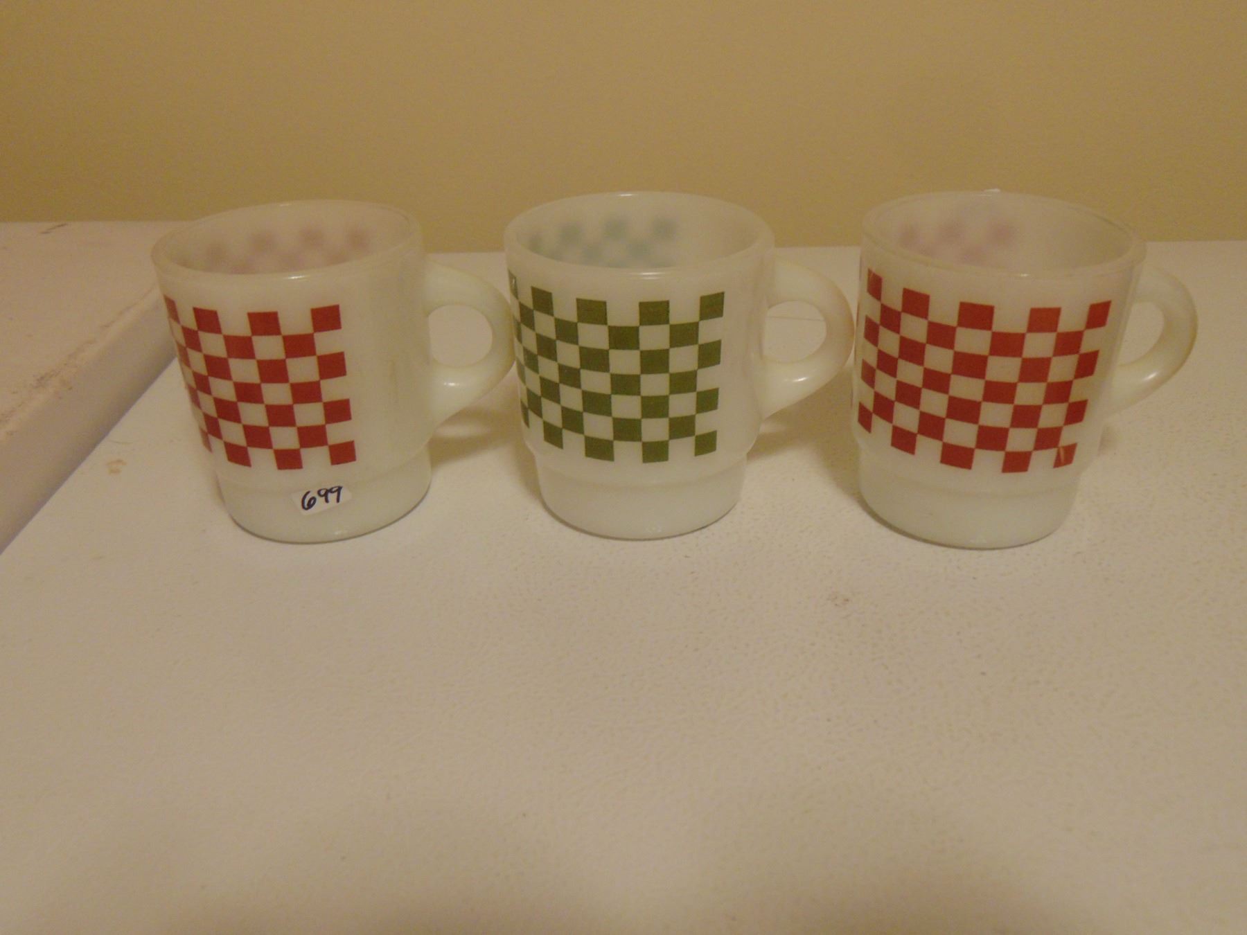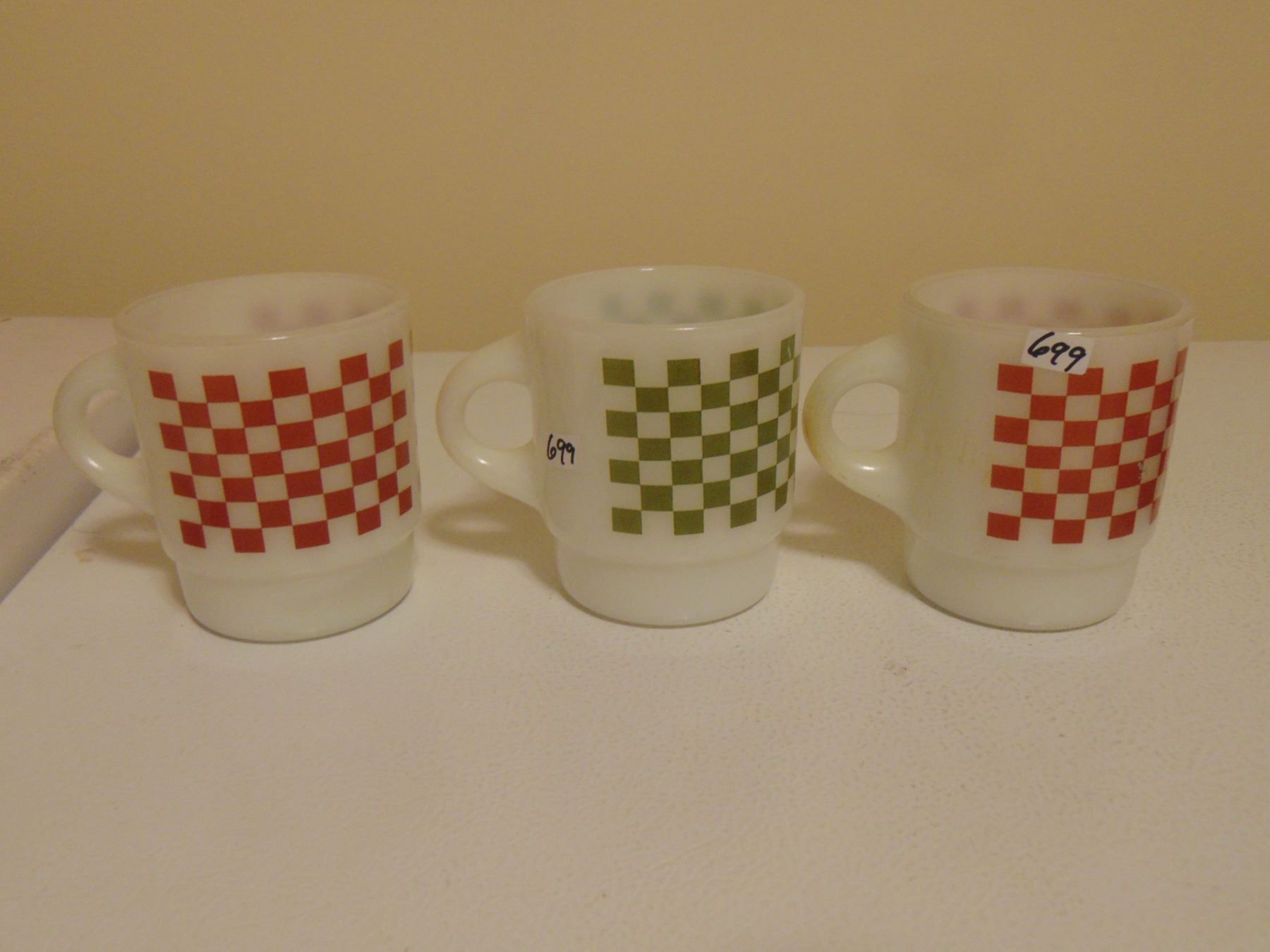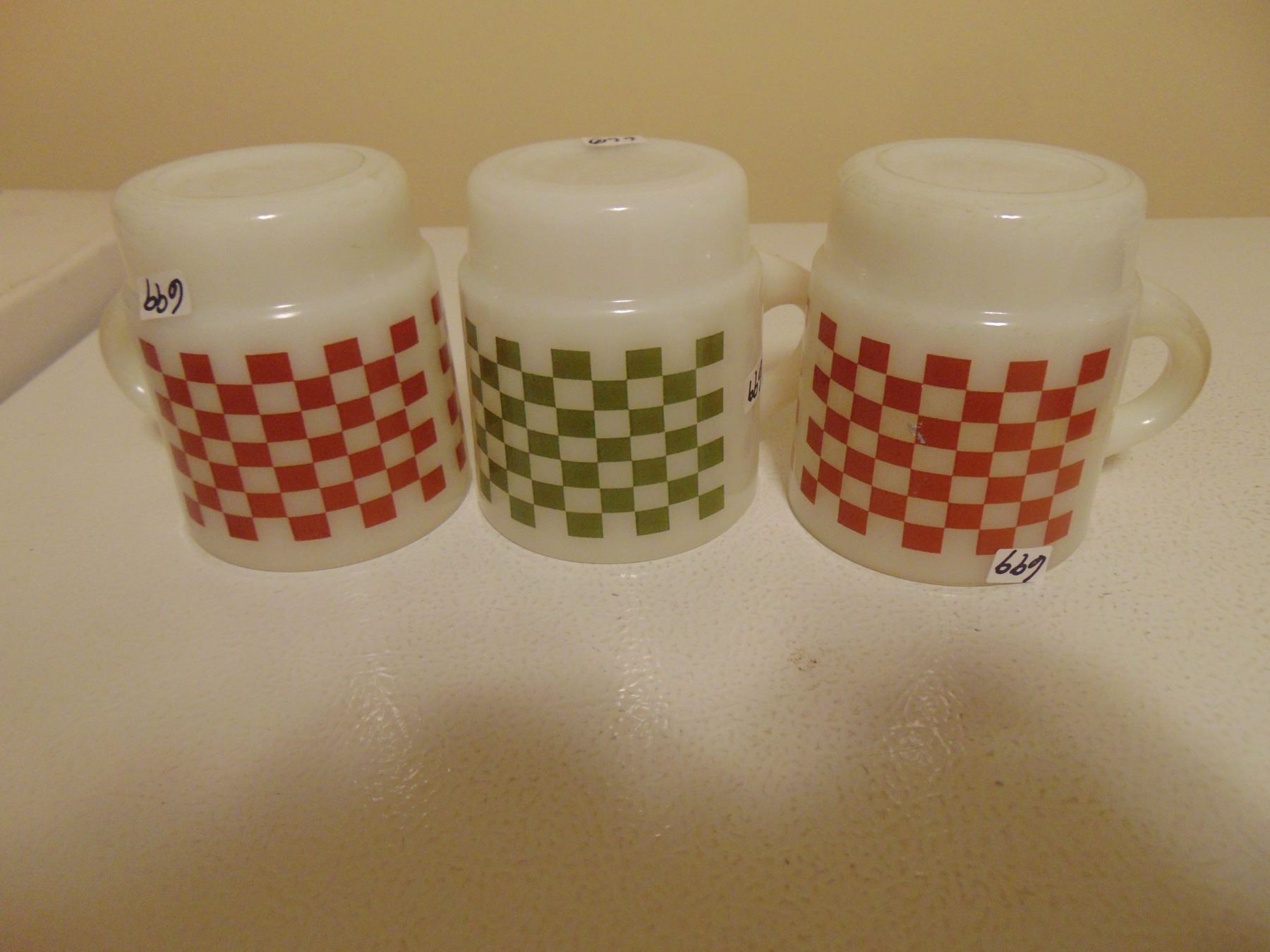 3 ANCHOR HOCKING "C" HANDLE CHECKERBOARD PATTERN MUGS SCARCE