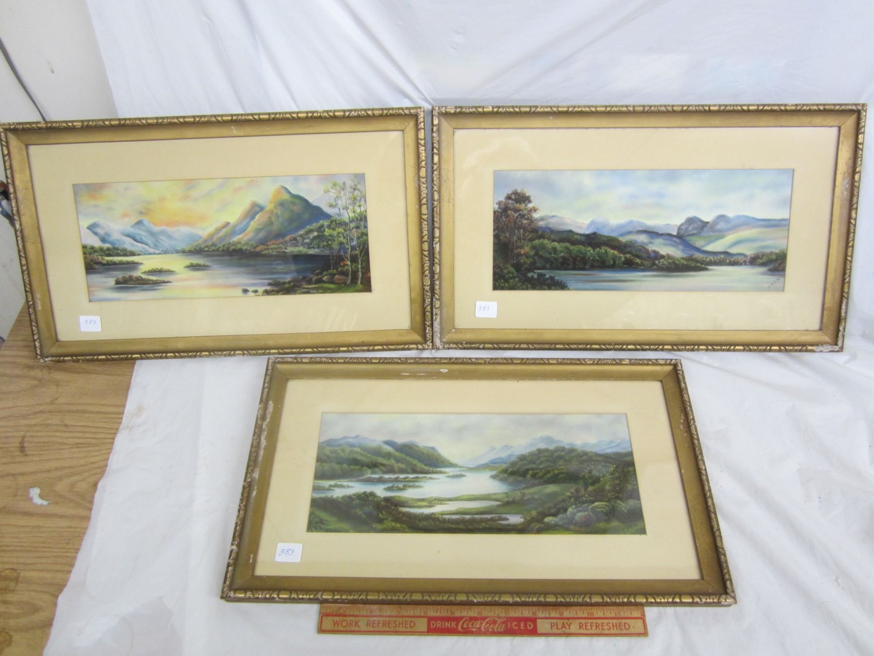 3 ANTIQUE PASTELS SIGNED FRAMED 11 X18