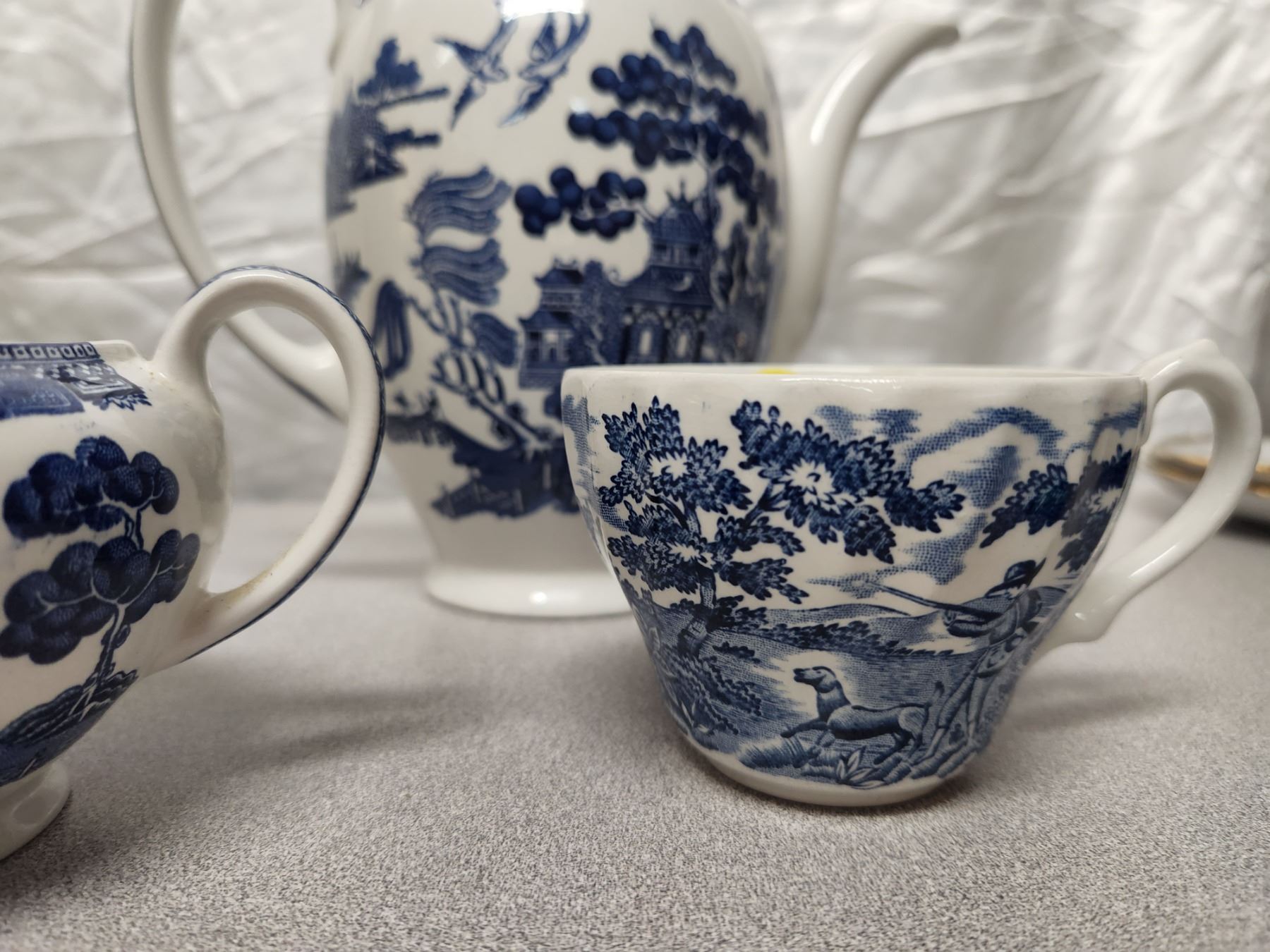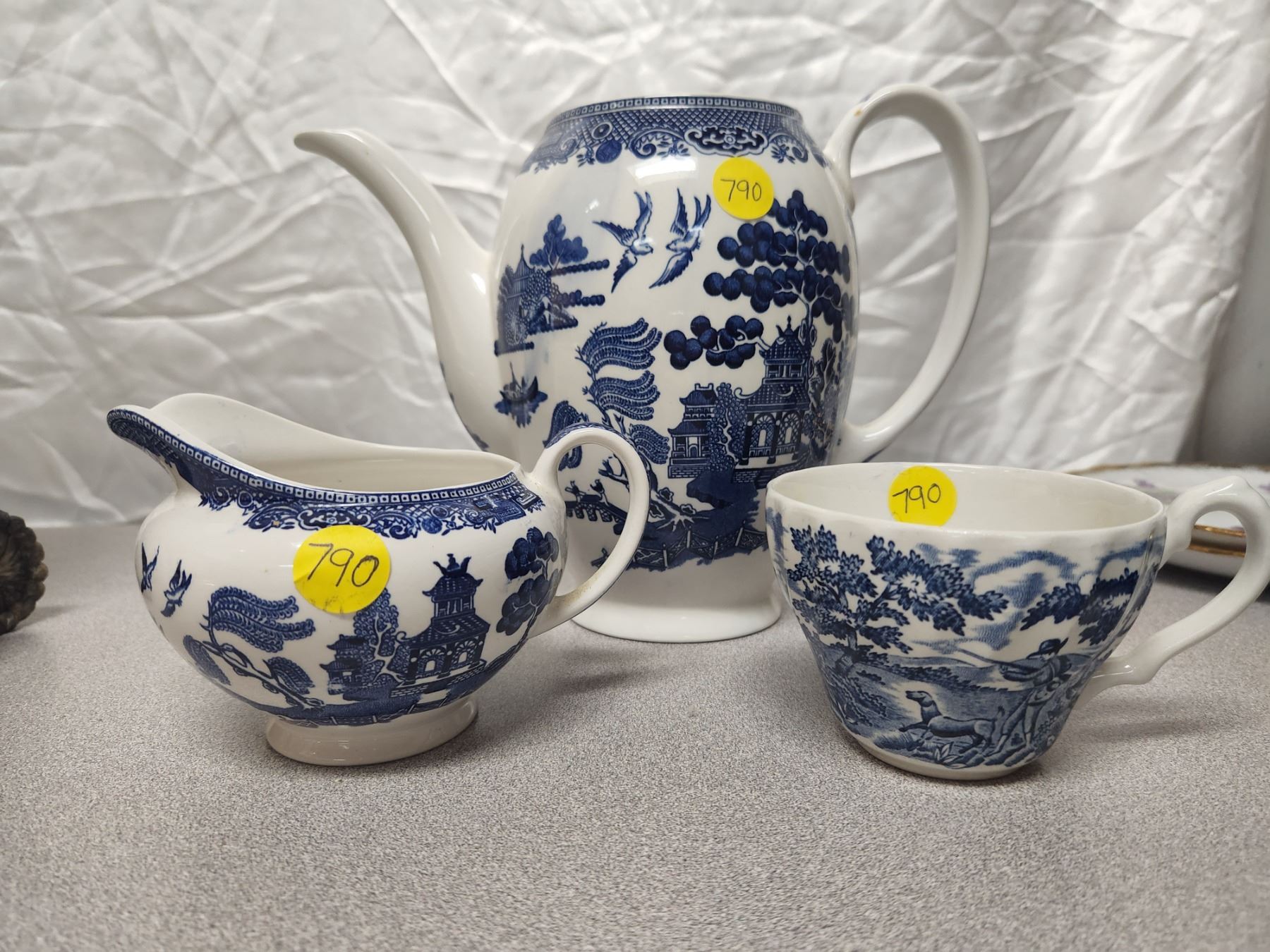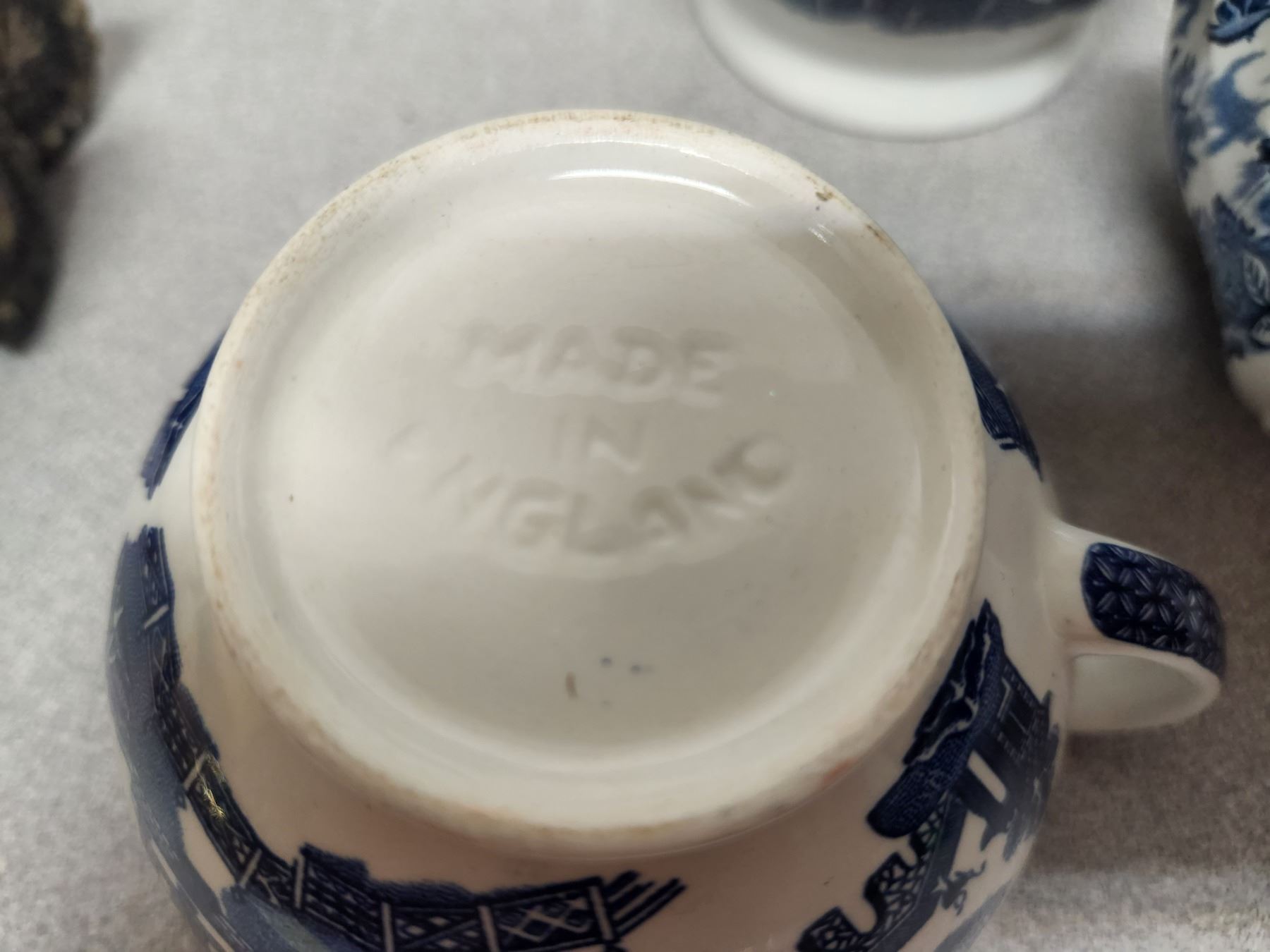 (3) Antique England Blue & White Set (Pitcher, Cream, & Cup)