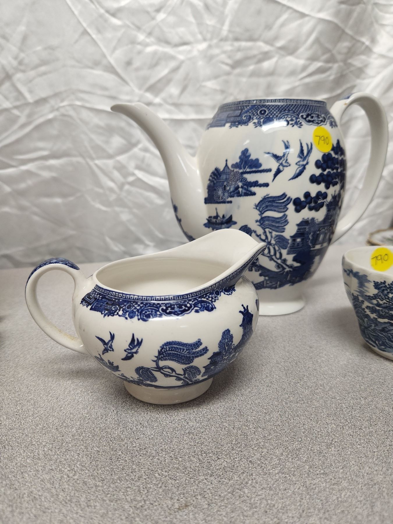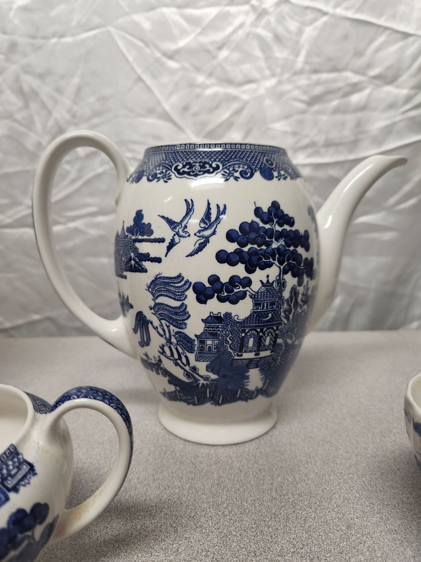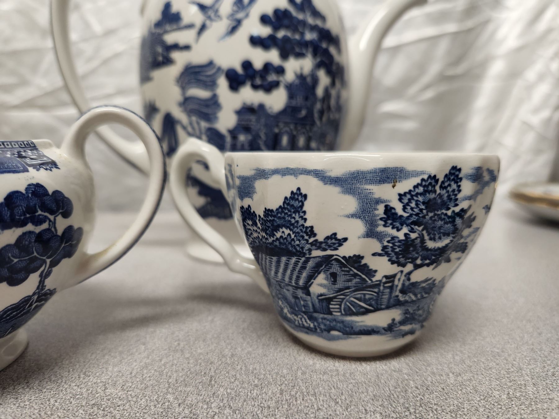 (3) Antique England Blue & White Set (Pitcher, Cream, & Cup)