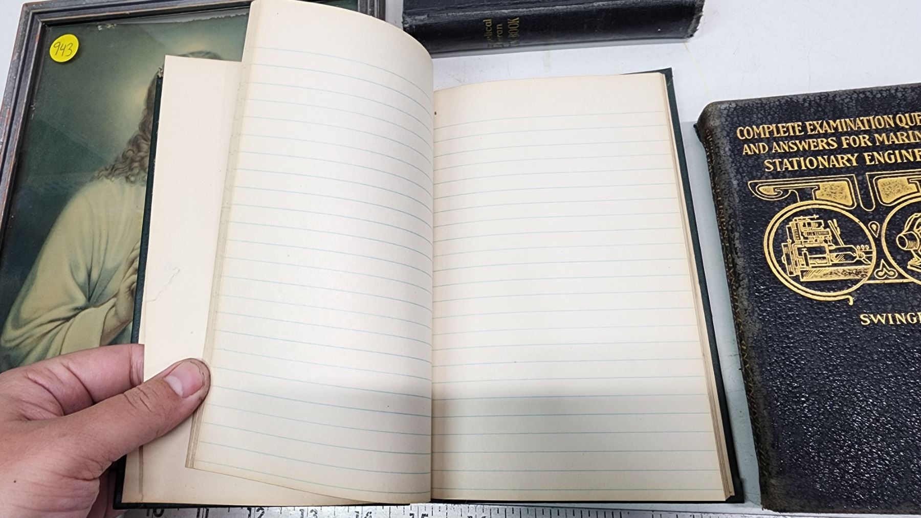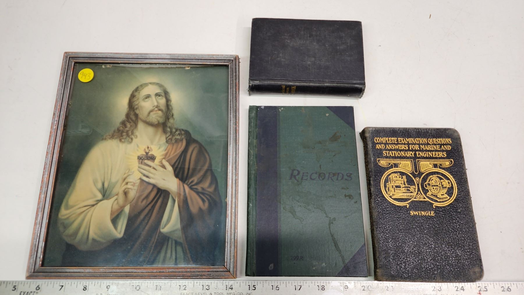 3 Antique non-fiction books & Jesus Christ framed picture