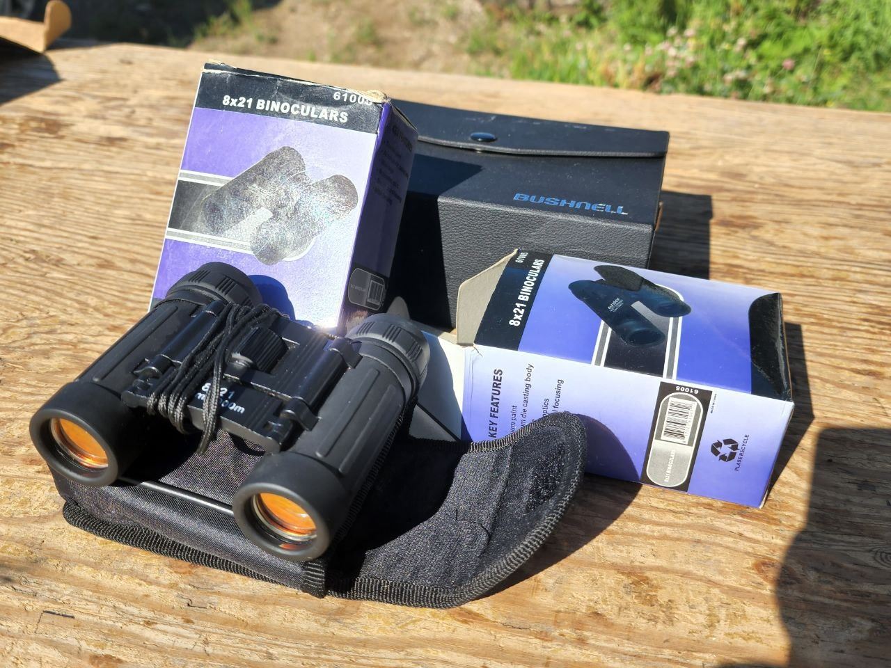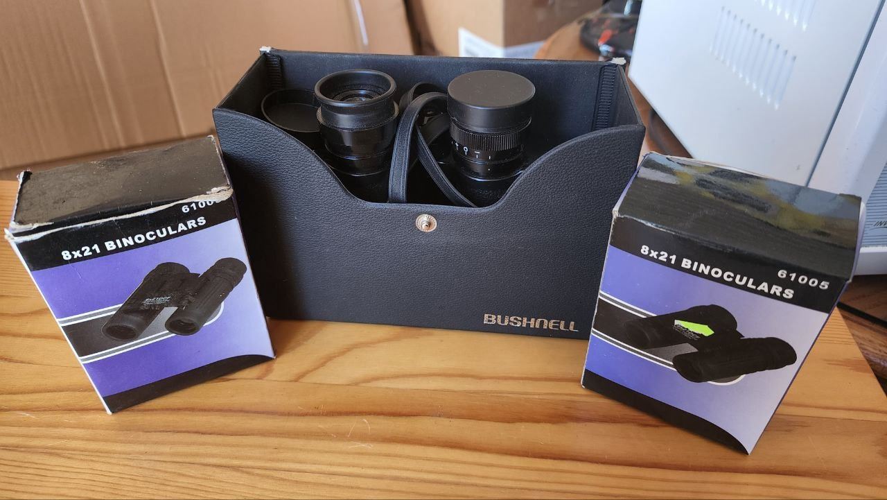 3 Assorted Binoculars, 1 Large Bushnell, 2 Small 8x21