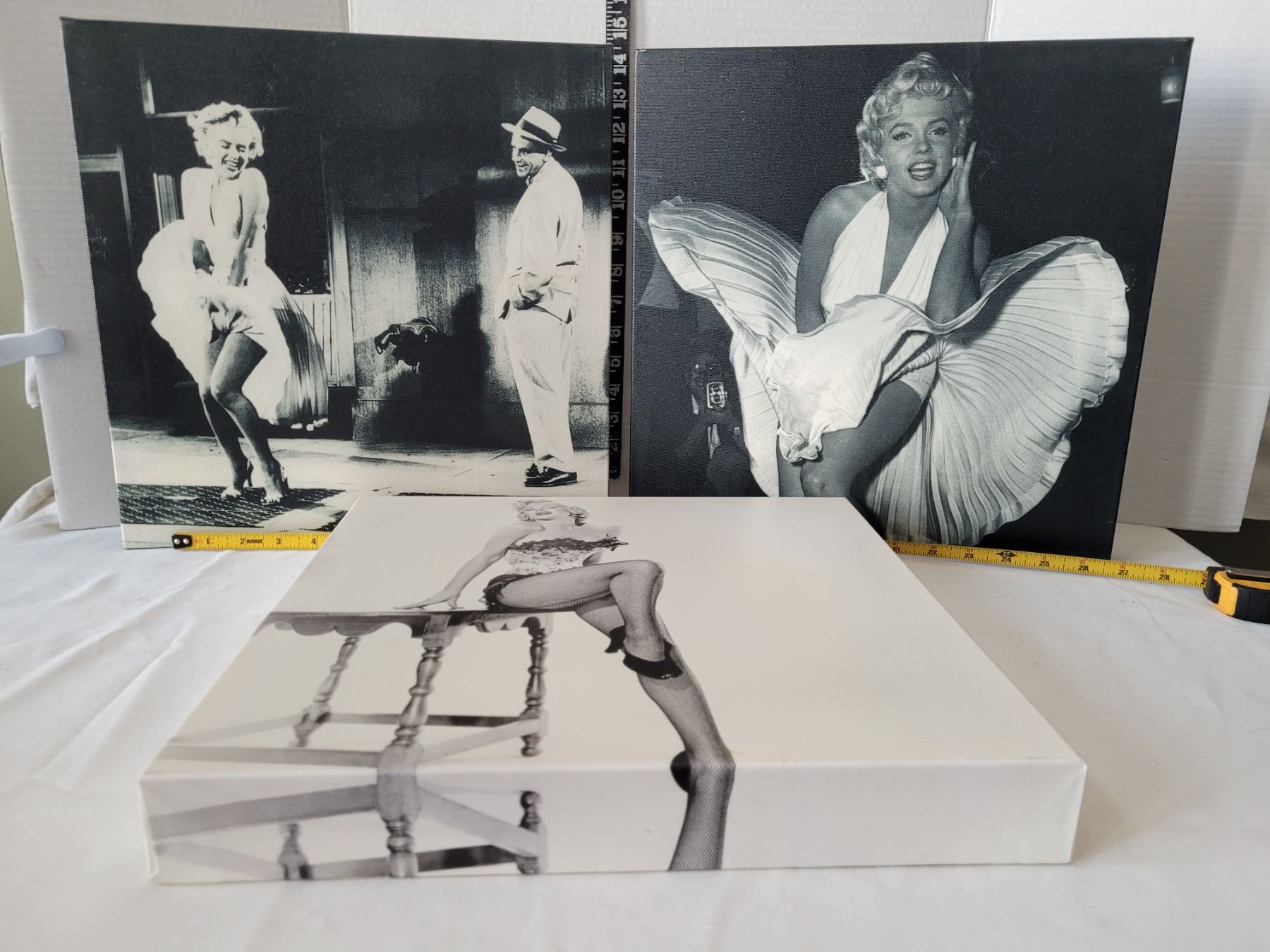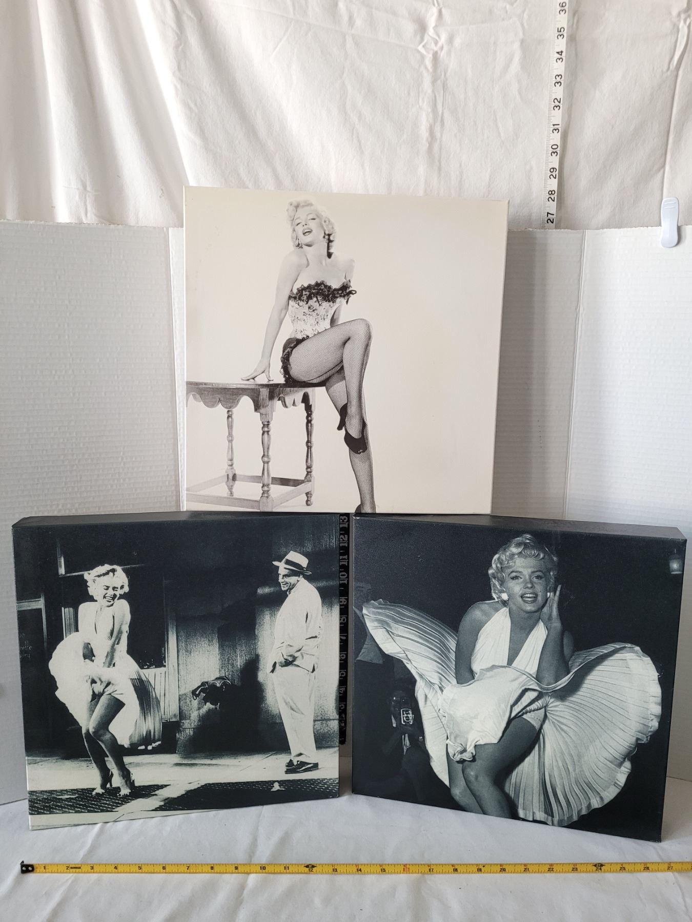 3 B&W canvas Marilyn Monroe famous prints. 15 X 15