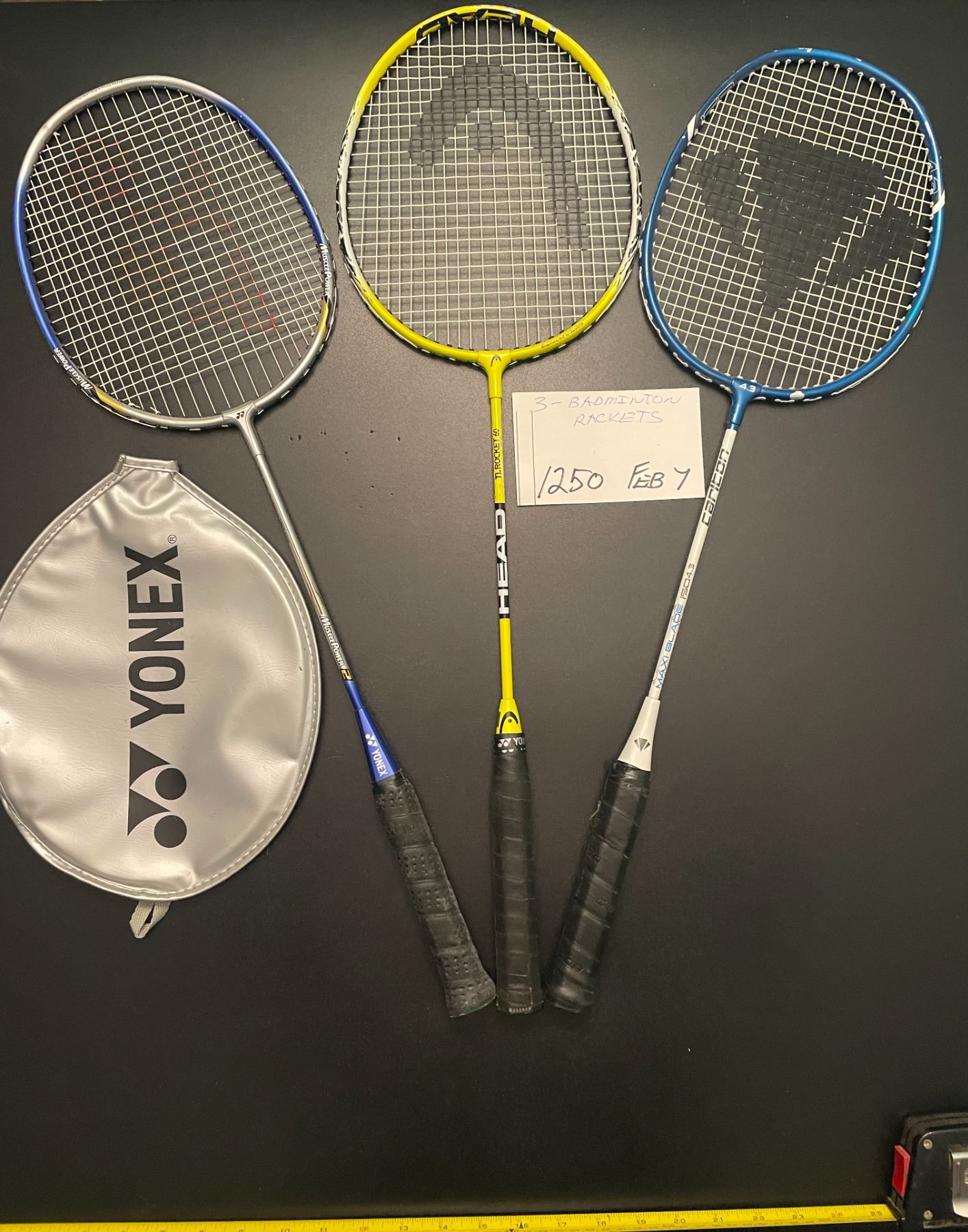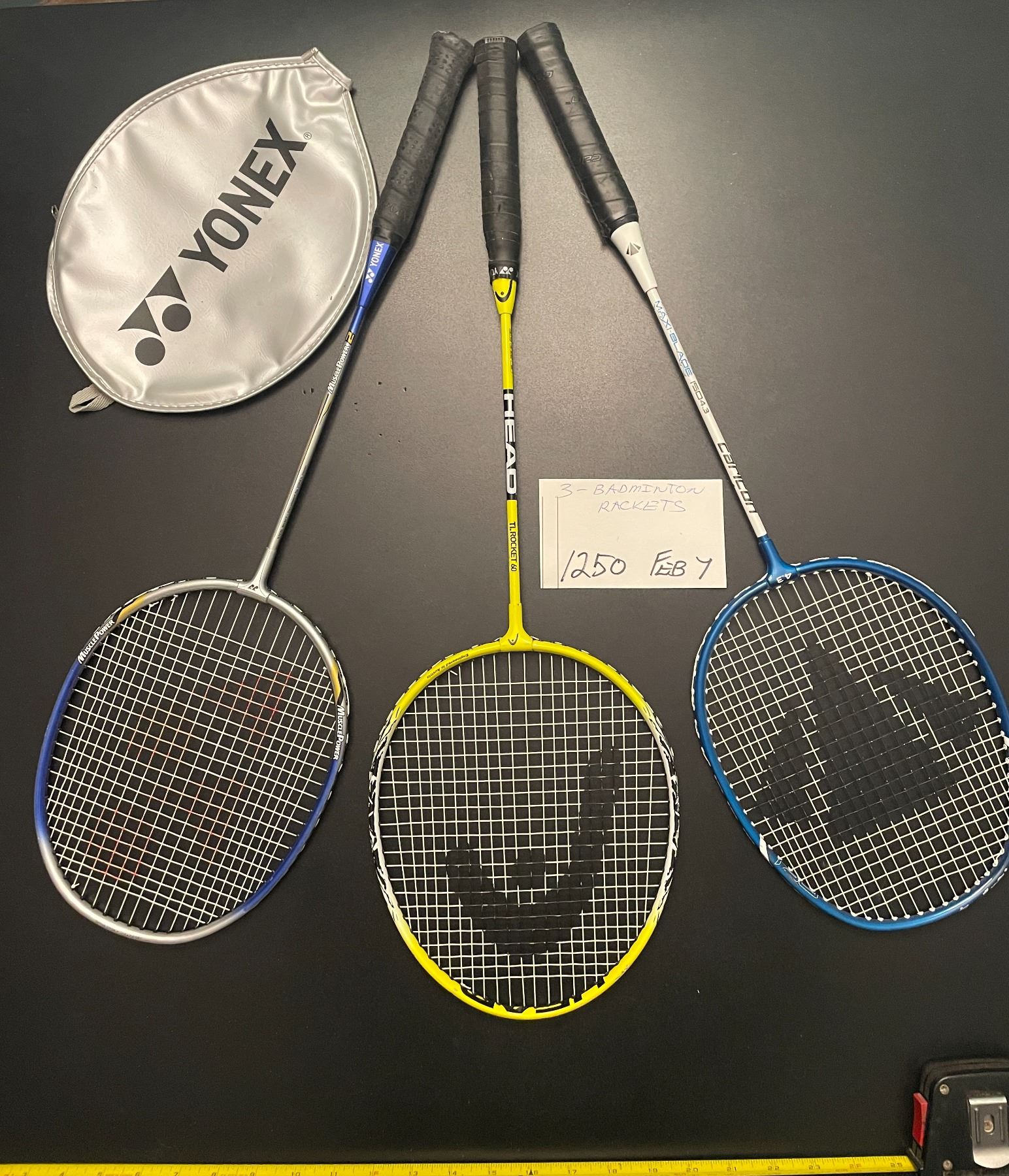 3 Badminton racquets - 2 Yonex - 1 Carlton