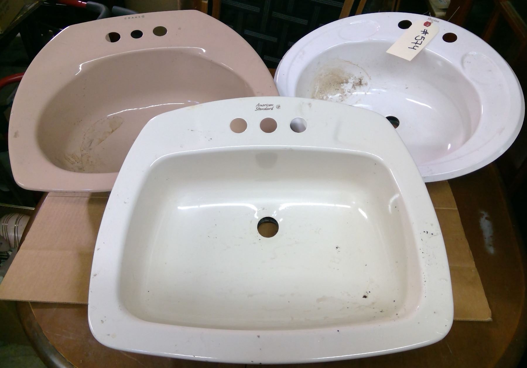 3 Bathroom Sinks - 1 white, 1 dusty pink, 1 cream