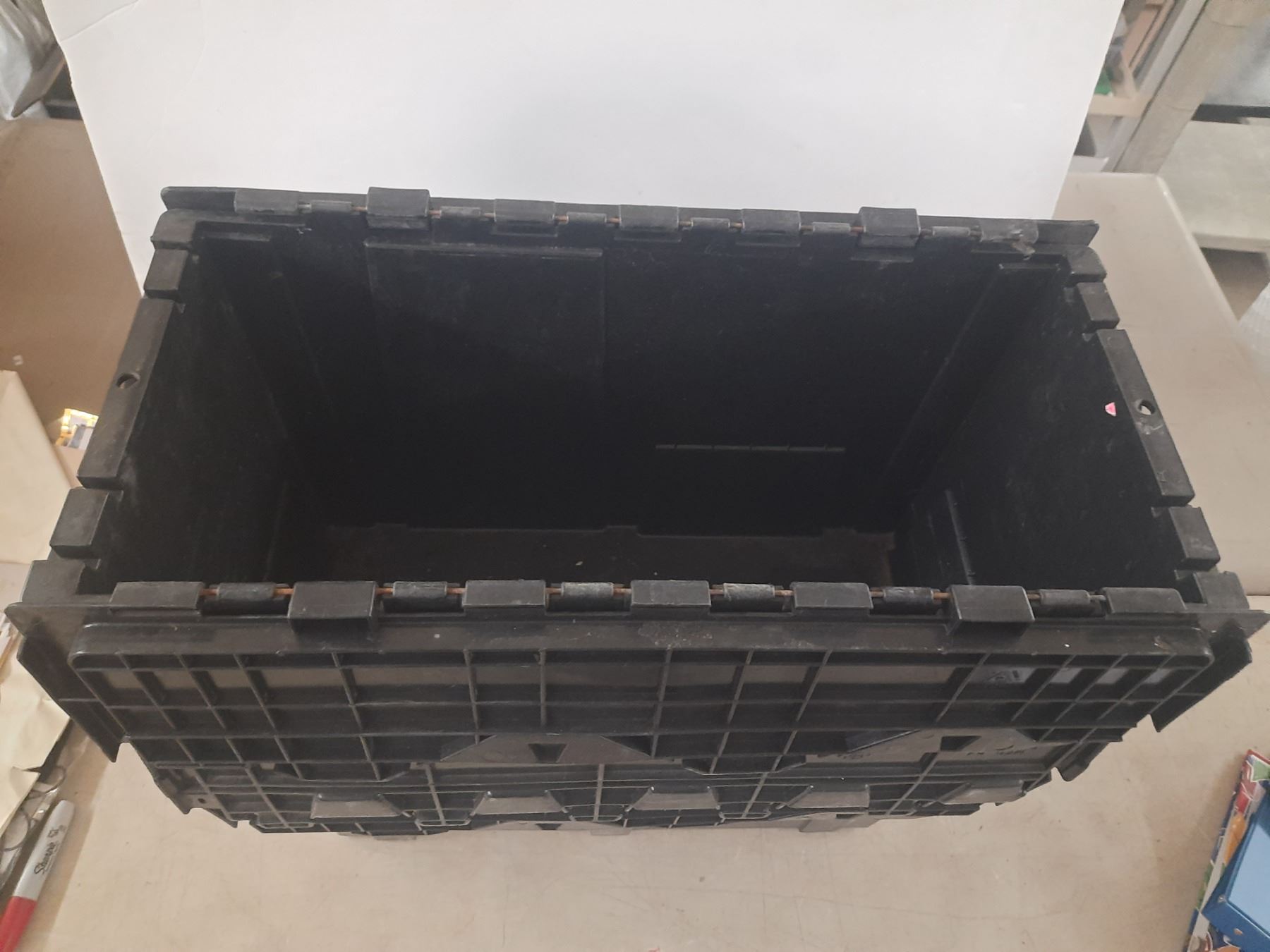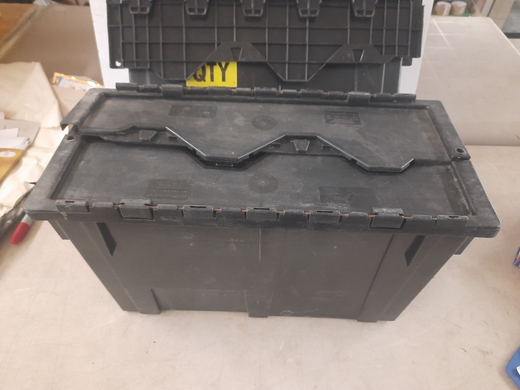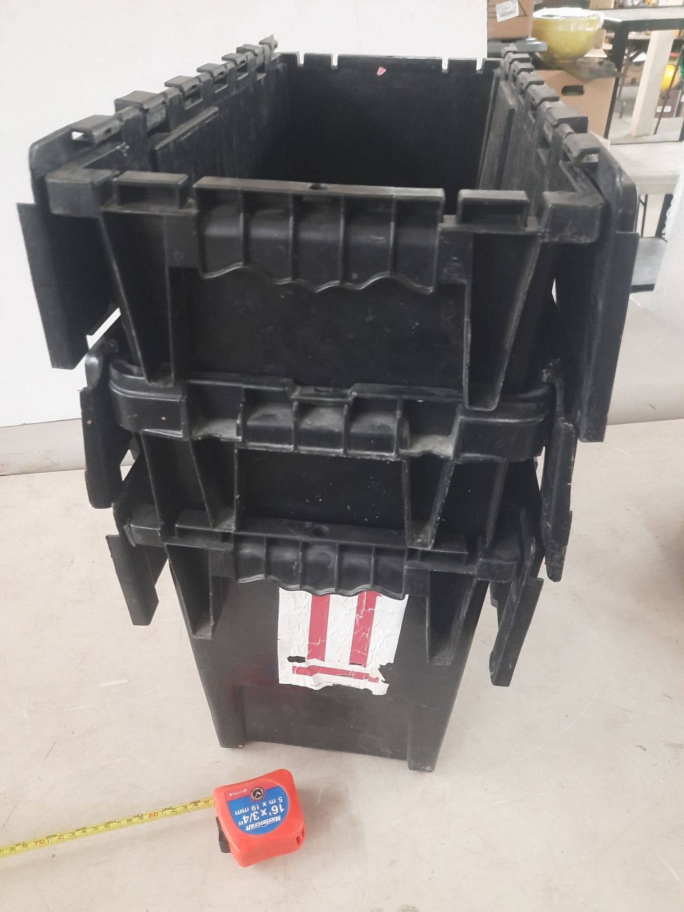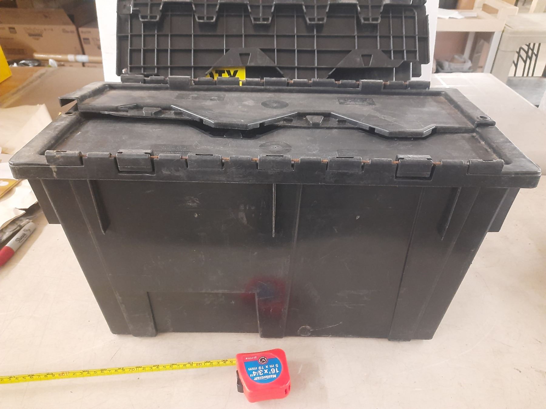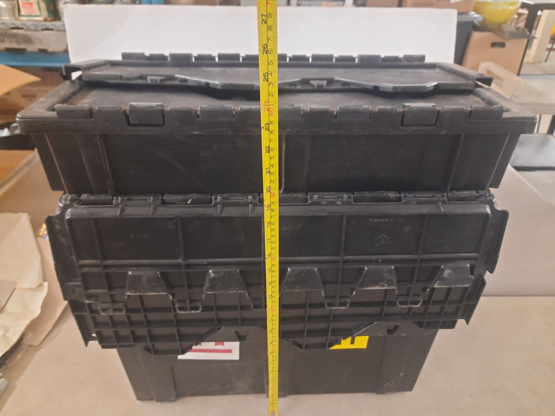 (3) Black Plastic Storage Crate. (13" x 23" x 11")