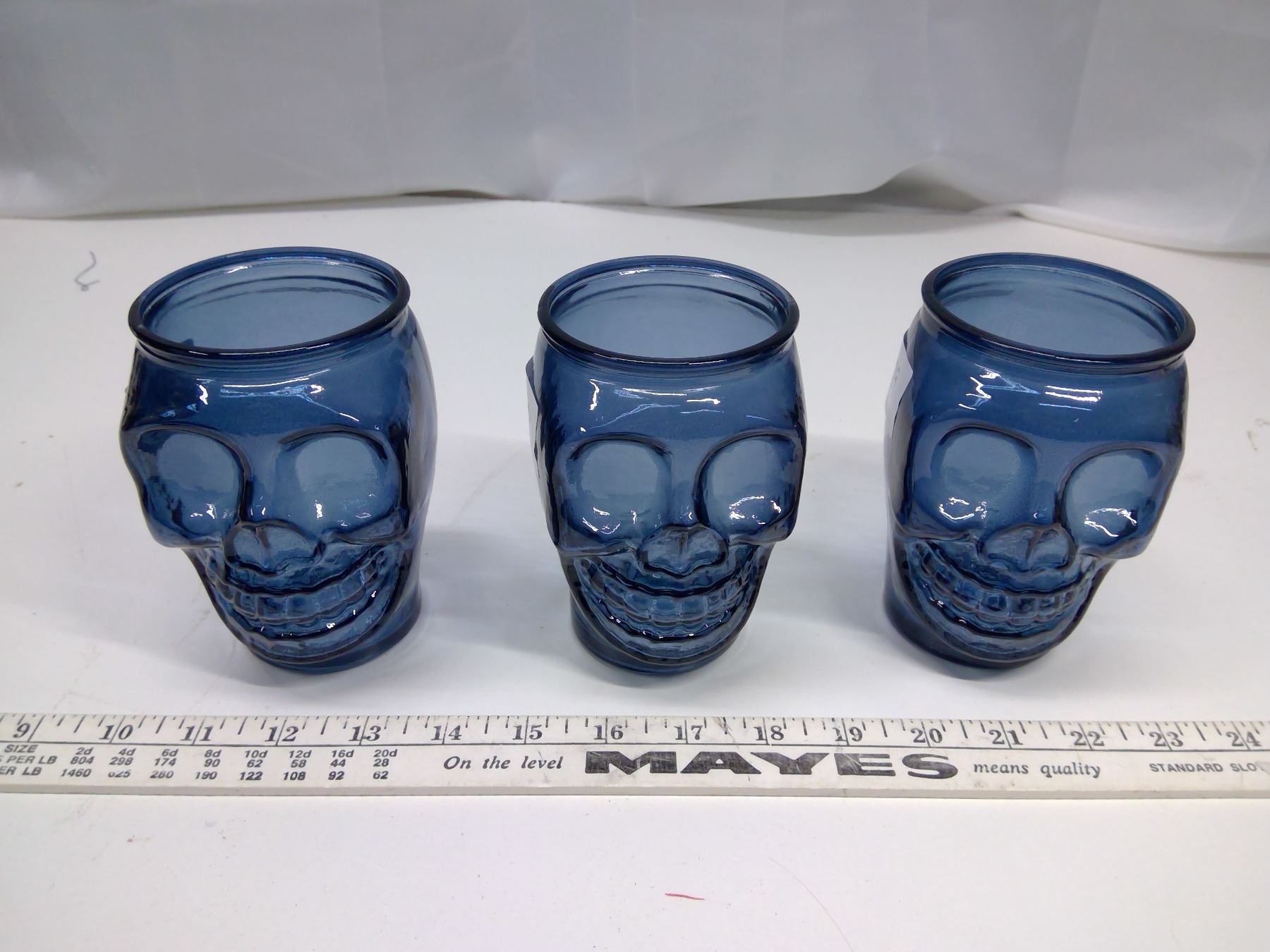 3 Blue Skull Head Cups