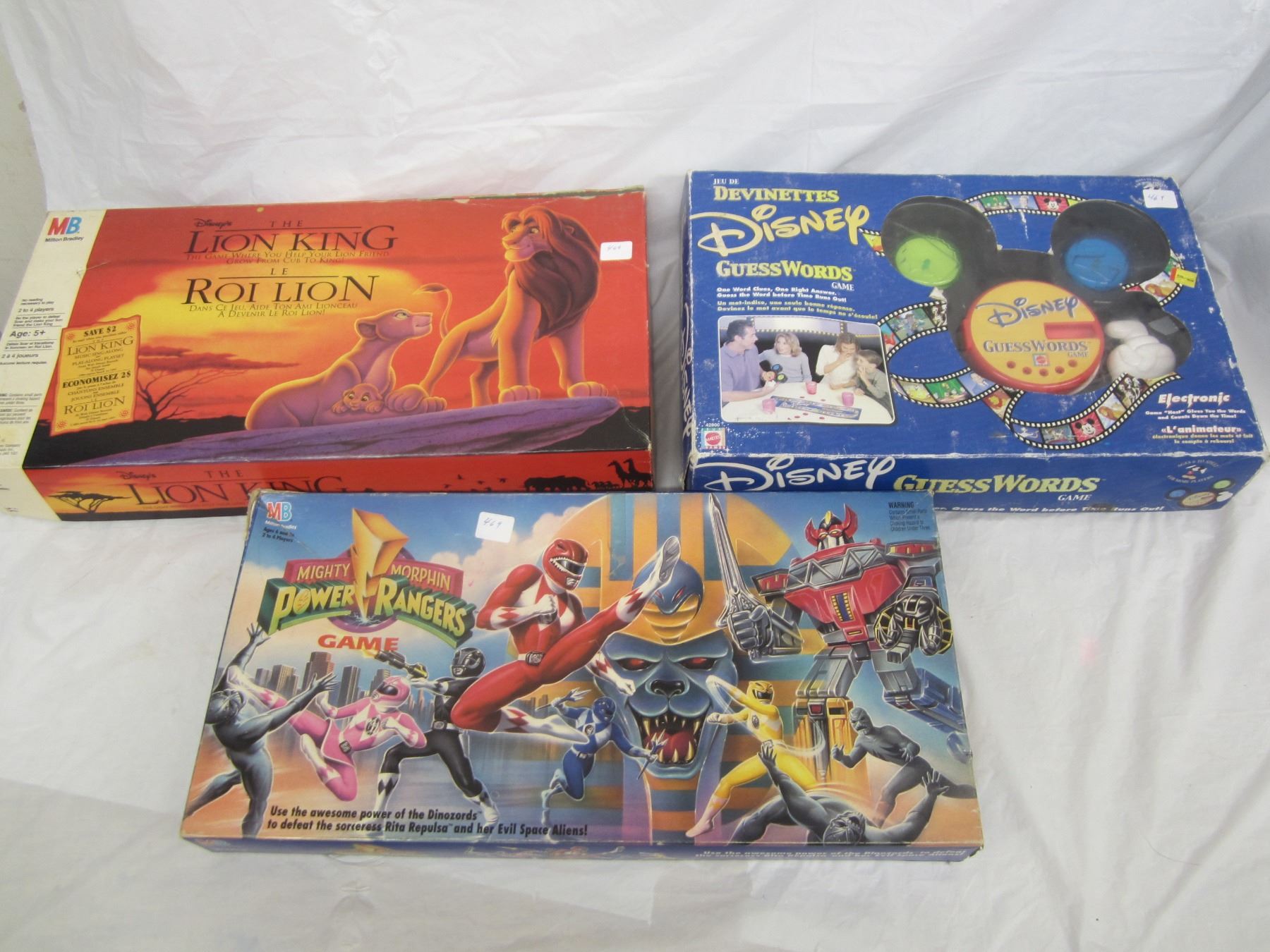 3 Board Games The Power Rangers , Lion King Ect.