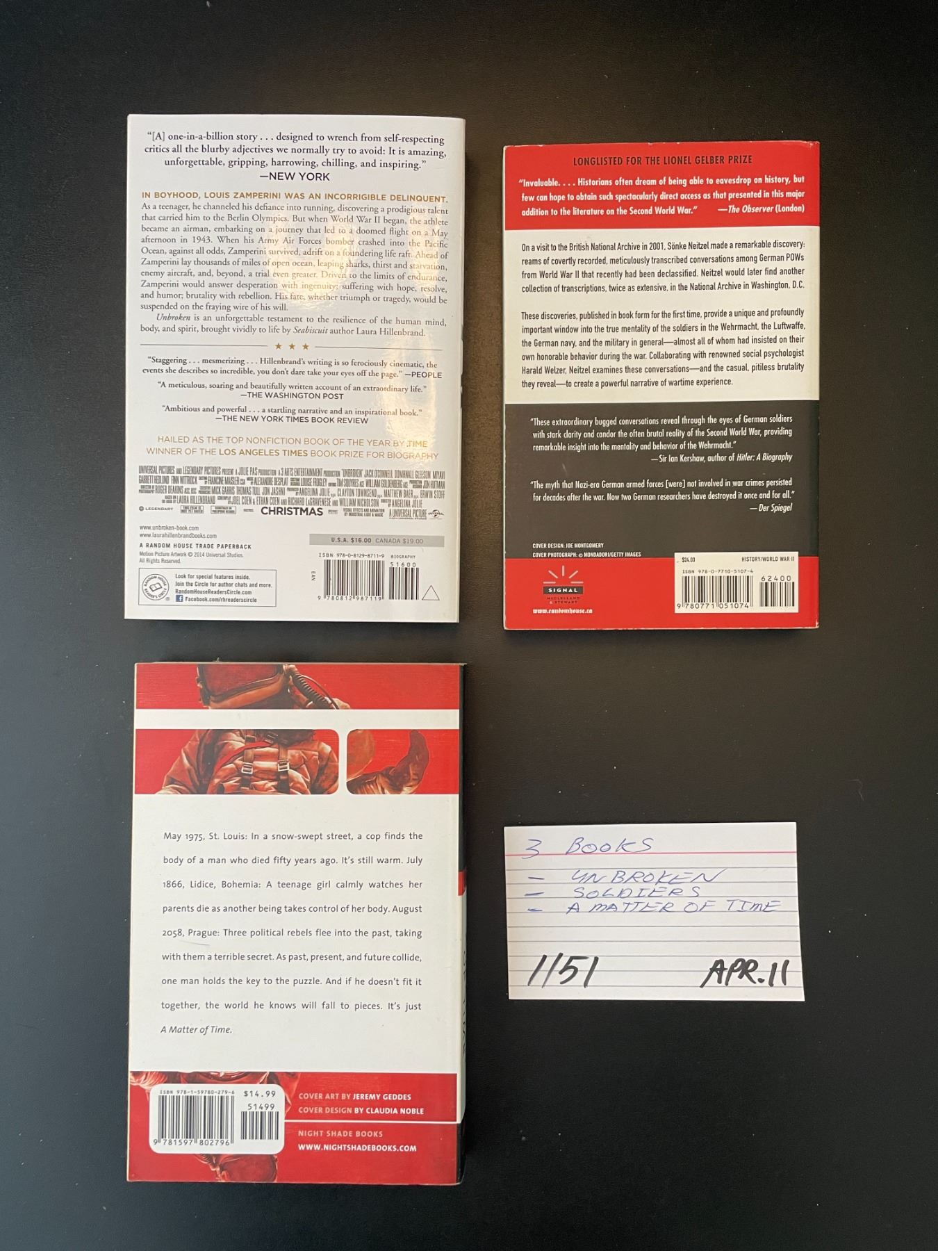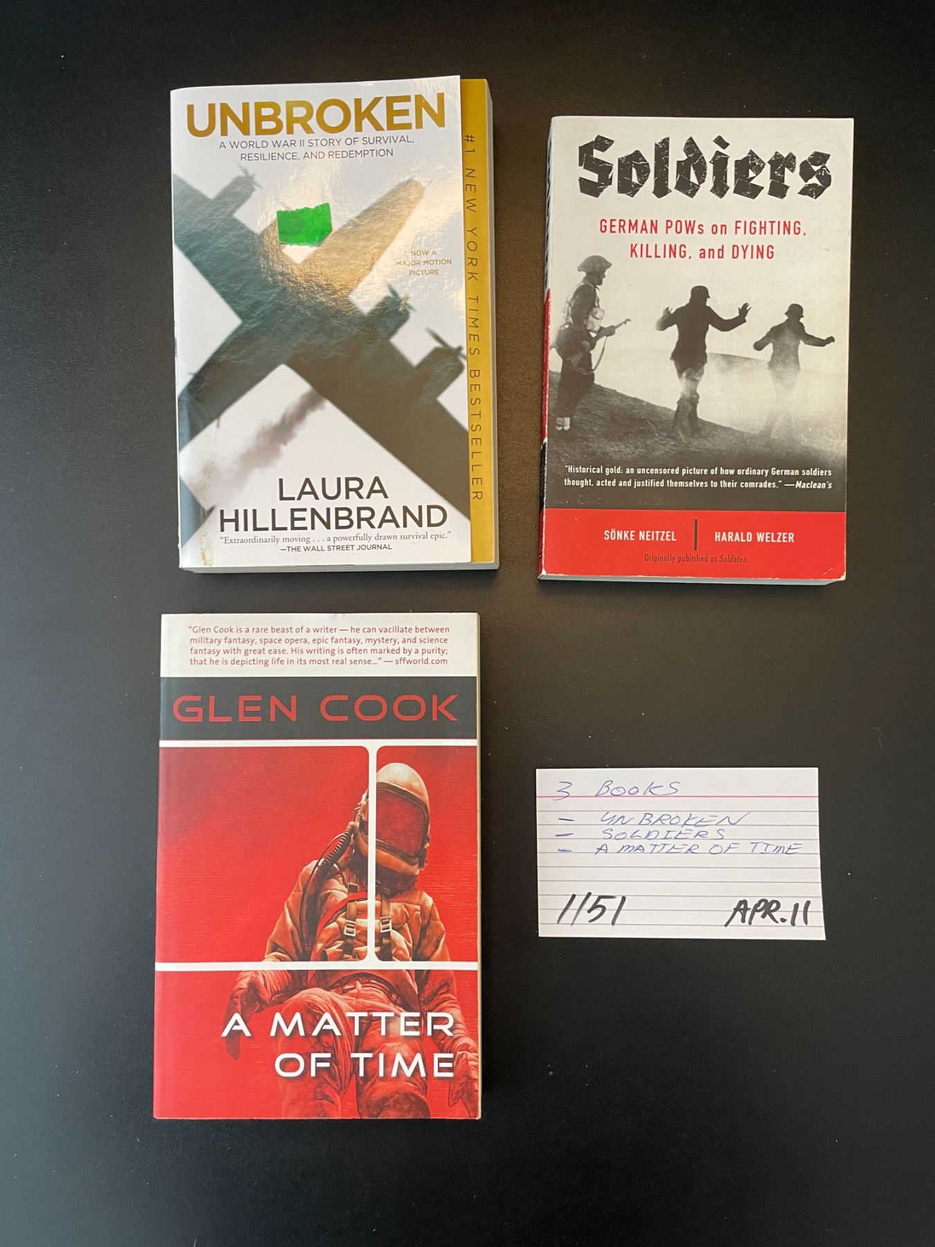 3 Books - Unbroken; Soldiers; A Matter of Time