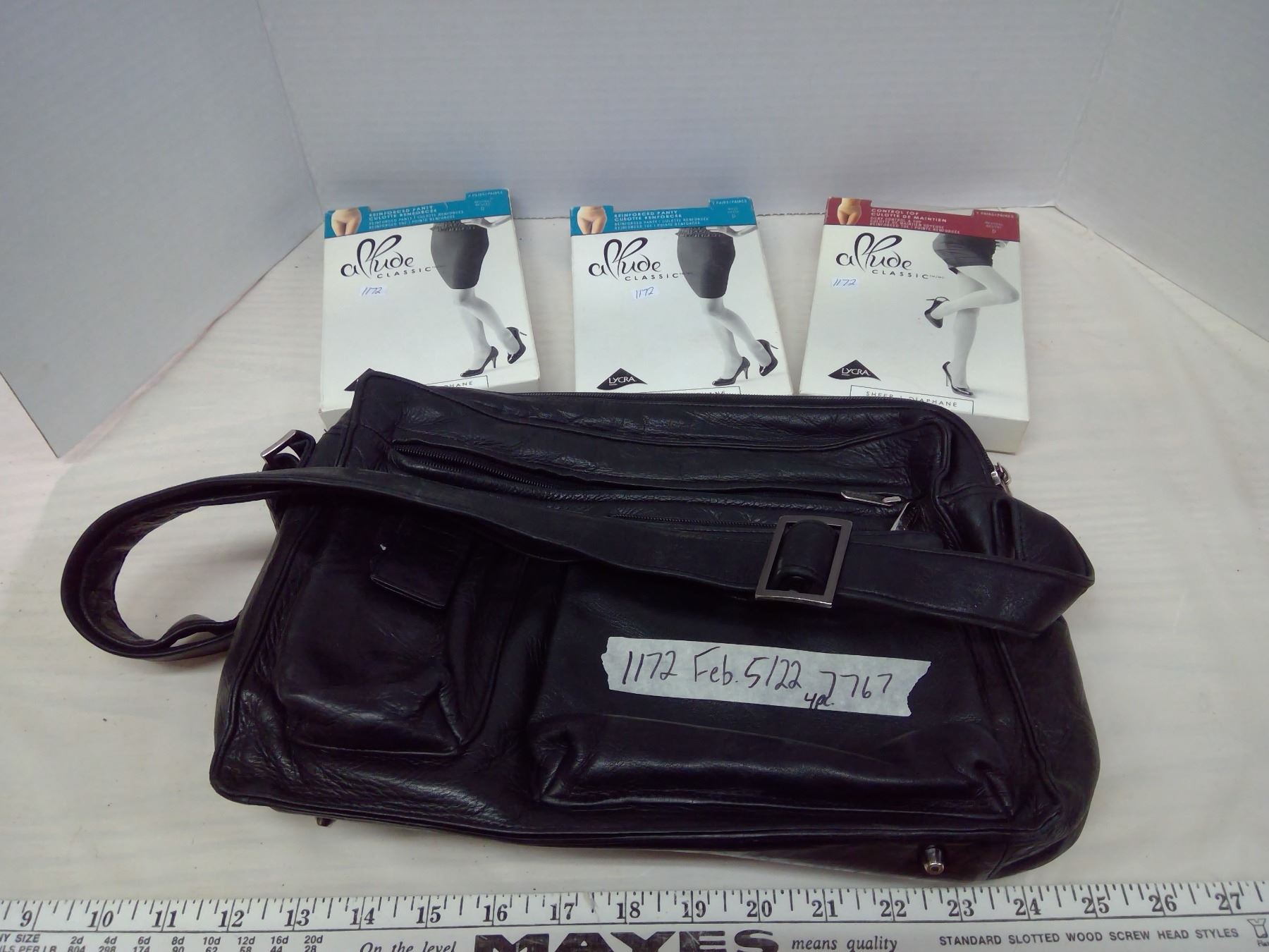3 Boxes of 20 Womens Garments, Black Leather Purse