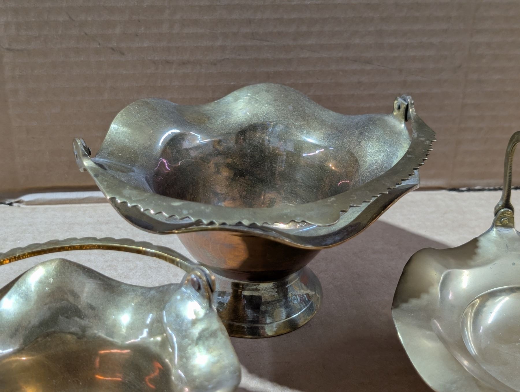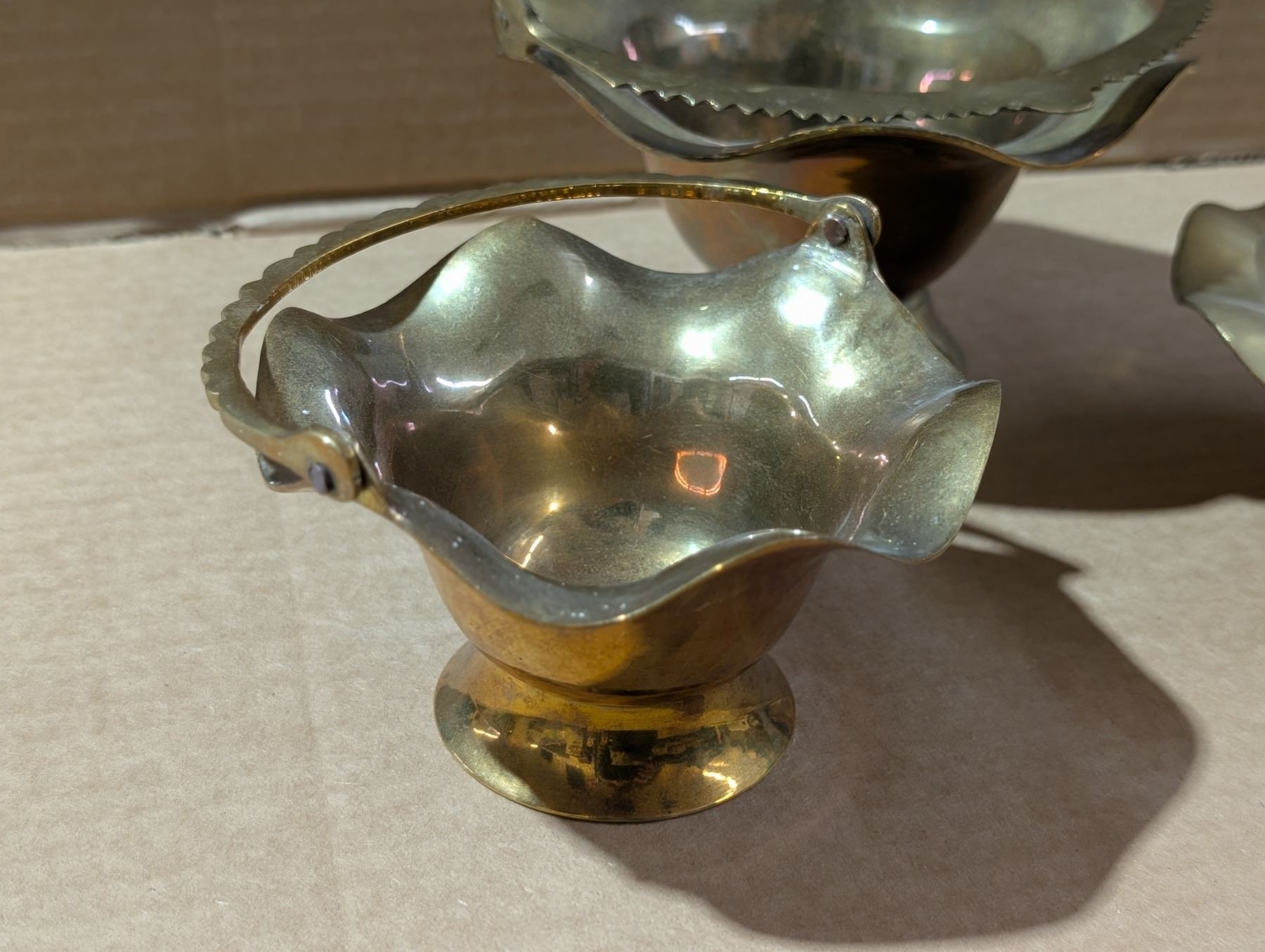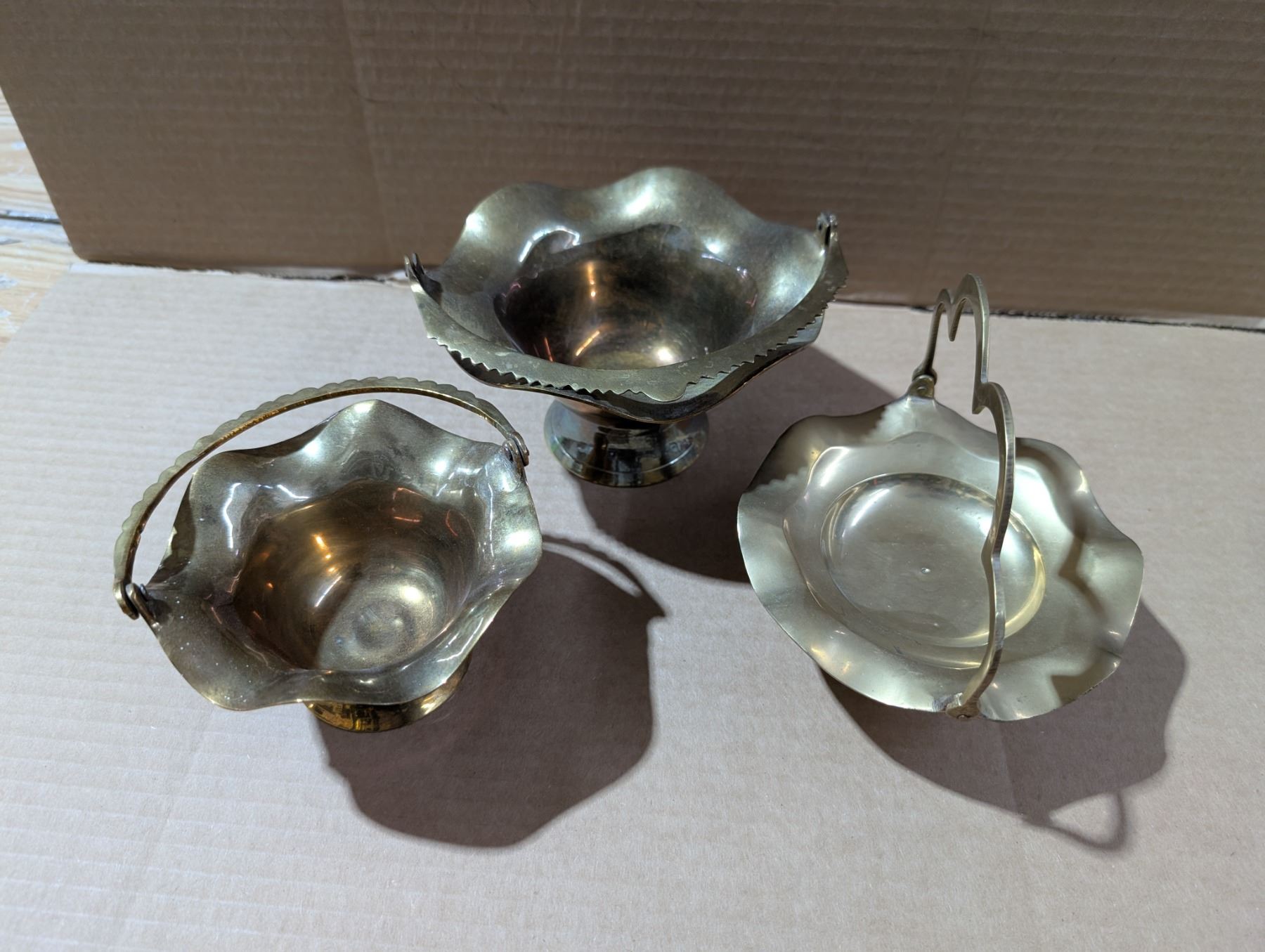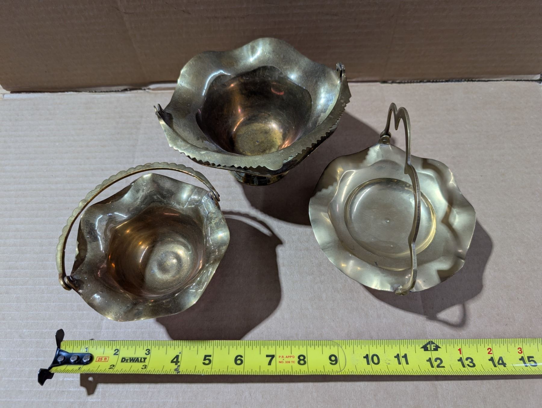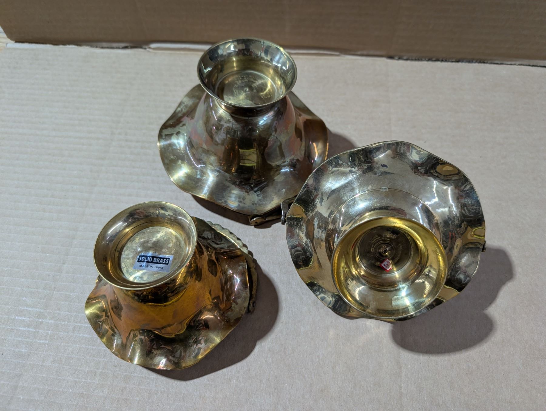 (3) Brass Trays w/Handles (1) Marked Solid Brass