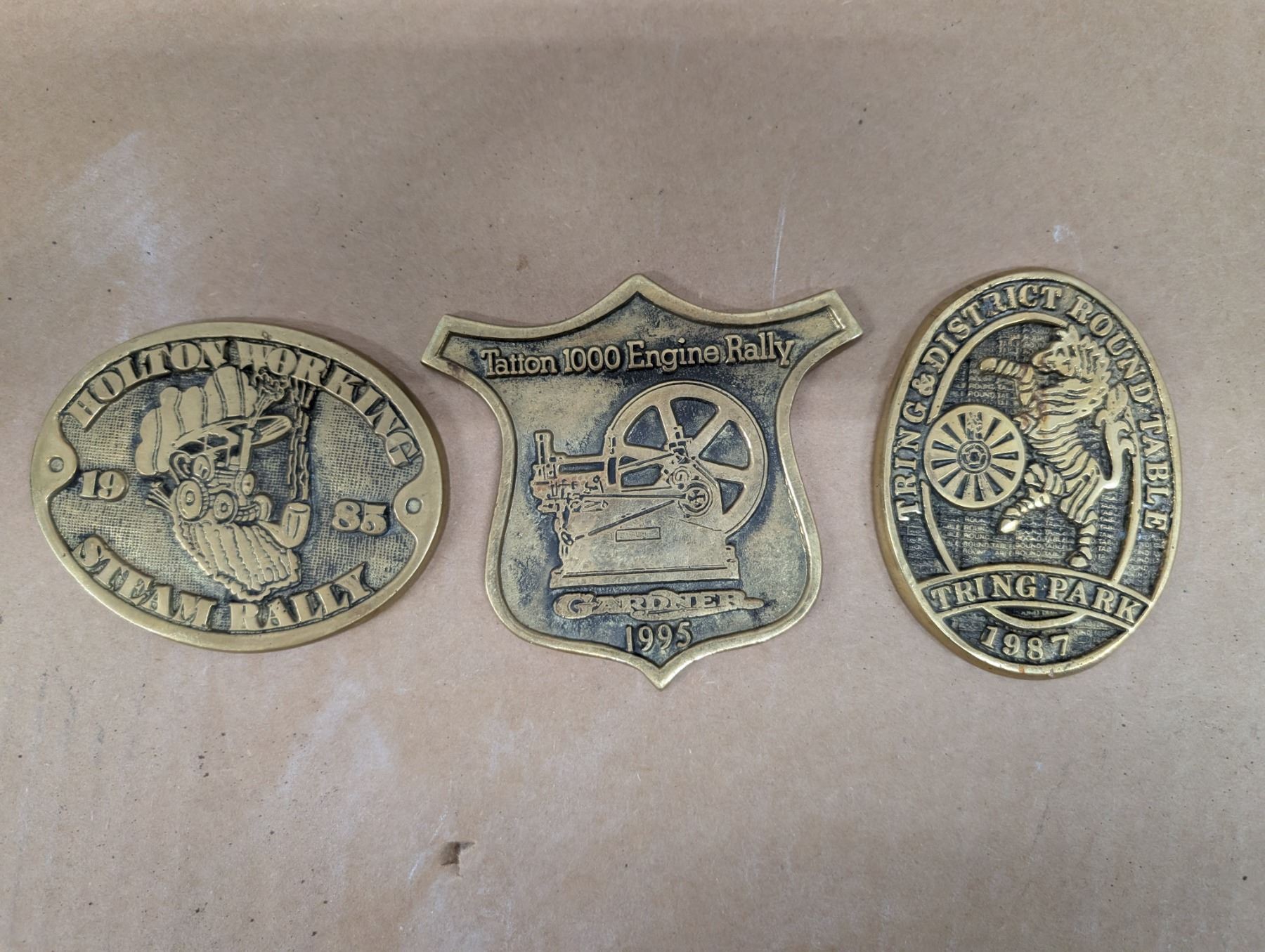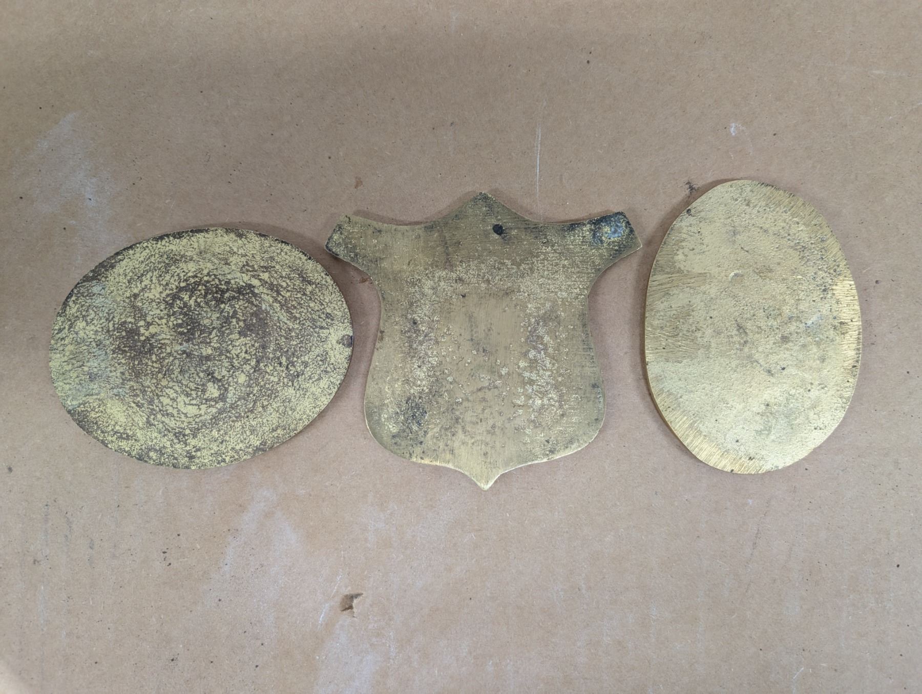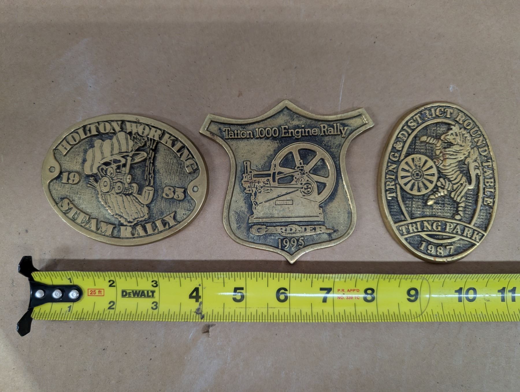 (3) Brass Vintage Commemorative Buckle like medallions (Look At Images for dates)