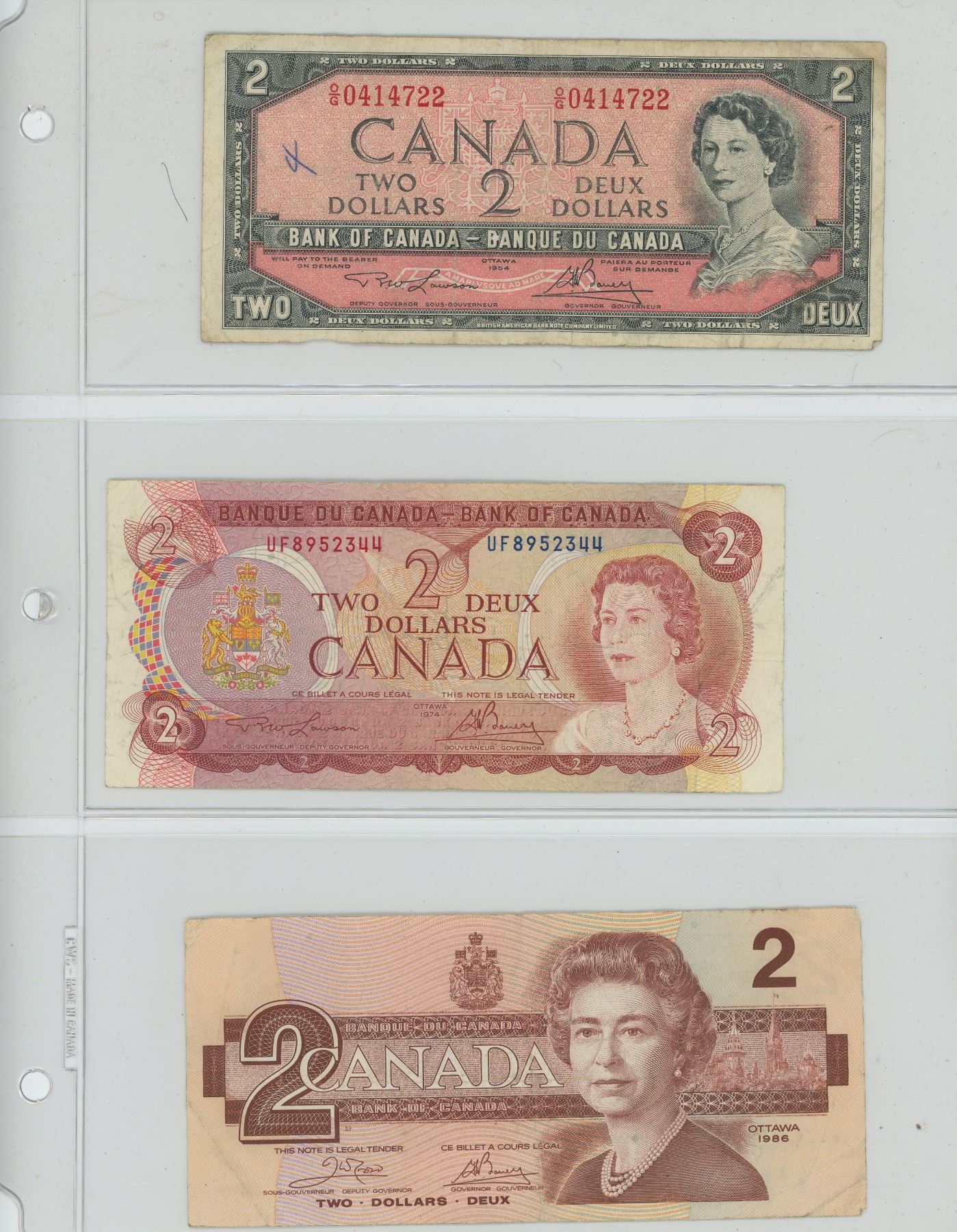 3 CANADIAN $2 - 1954, 1974, 1986