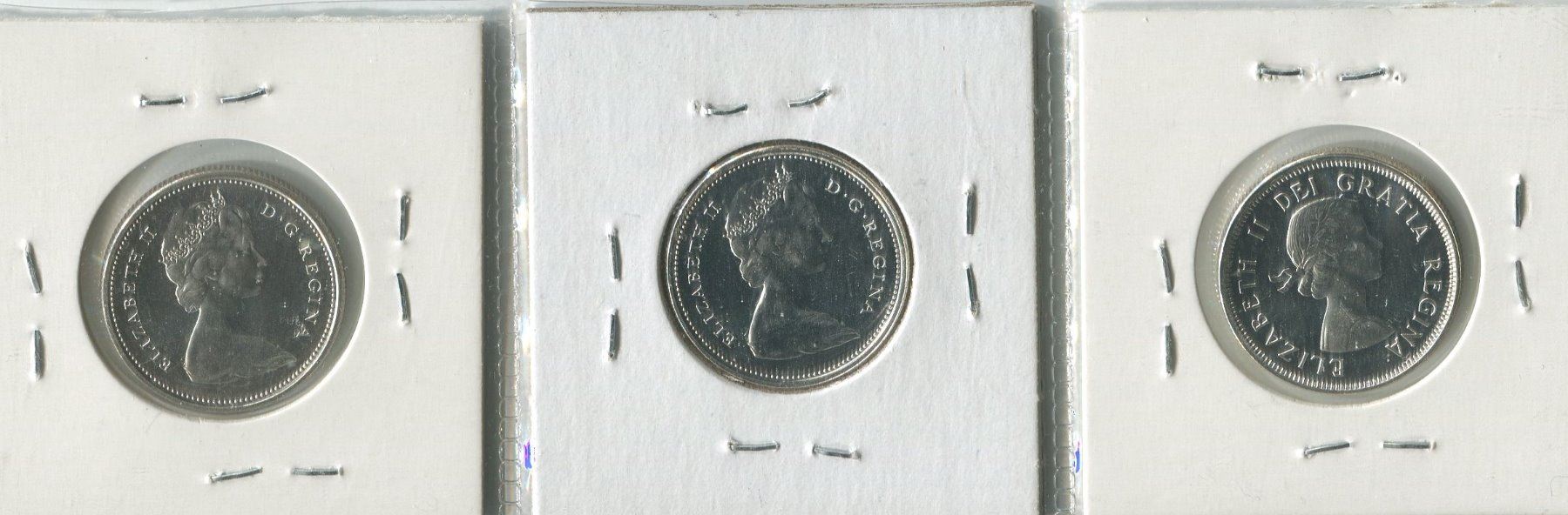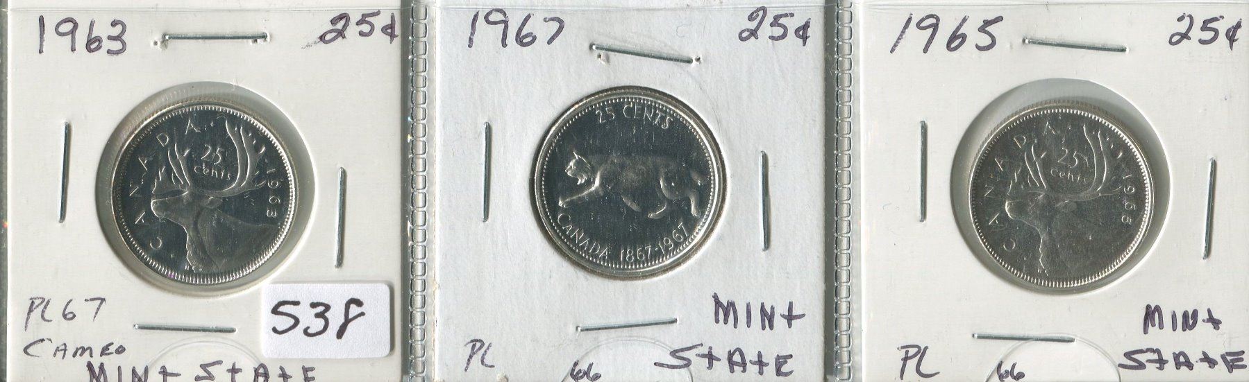 3 CNDN COINS 1963-25 CENT PC, 1965- 25 CENT PC, 1967- 25 CENT PC