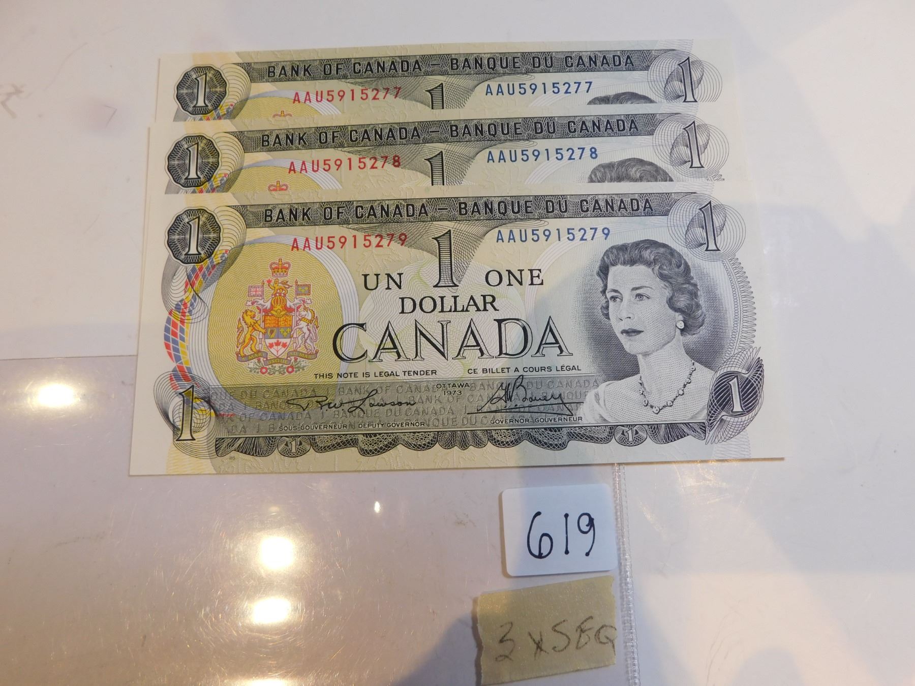 3-CONSECUTIVE 1973 DOLLAR BILLS UNC