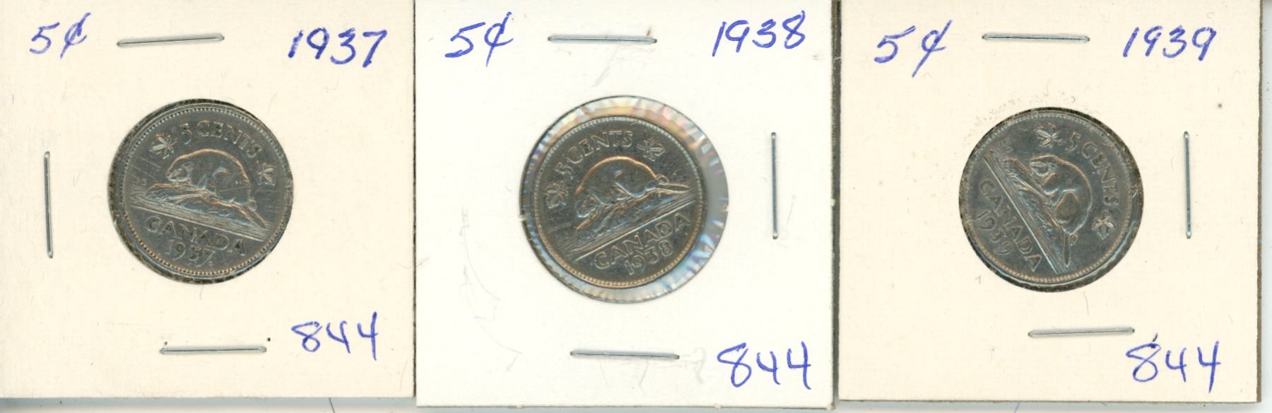 3 Canada 5¢ - 1937, 1938, 1939