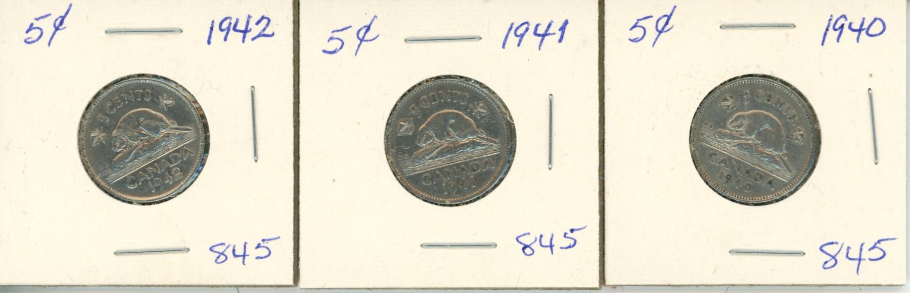 3 Canada 5¢ - 1940, 1941, 1942