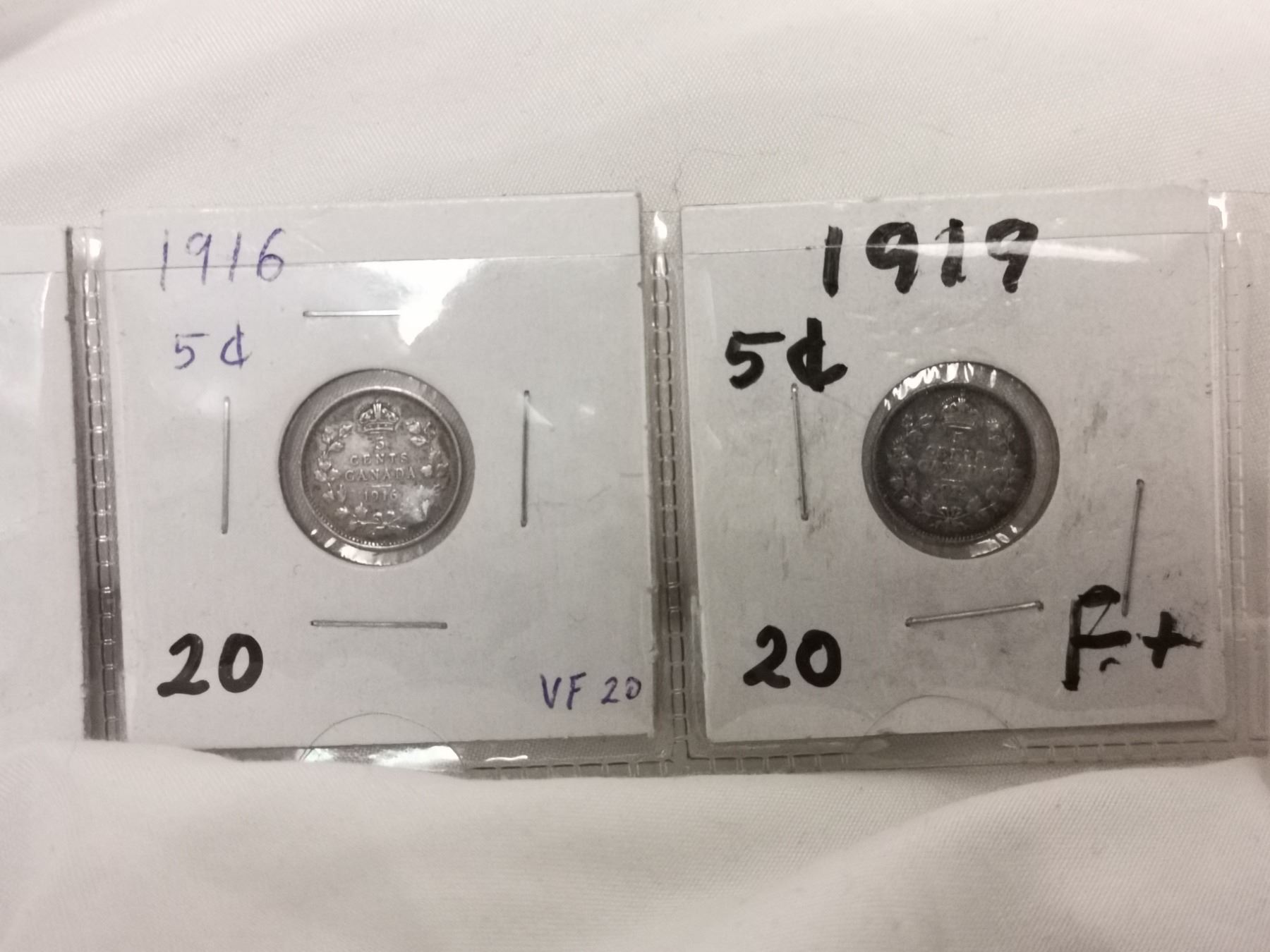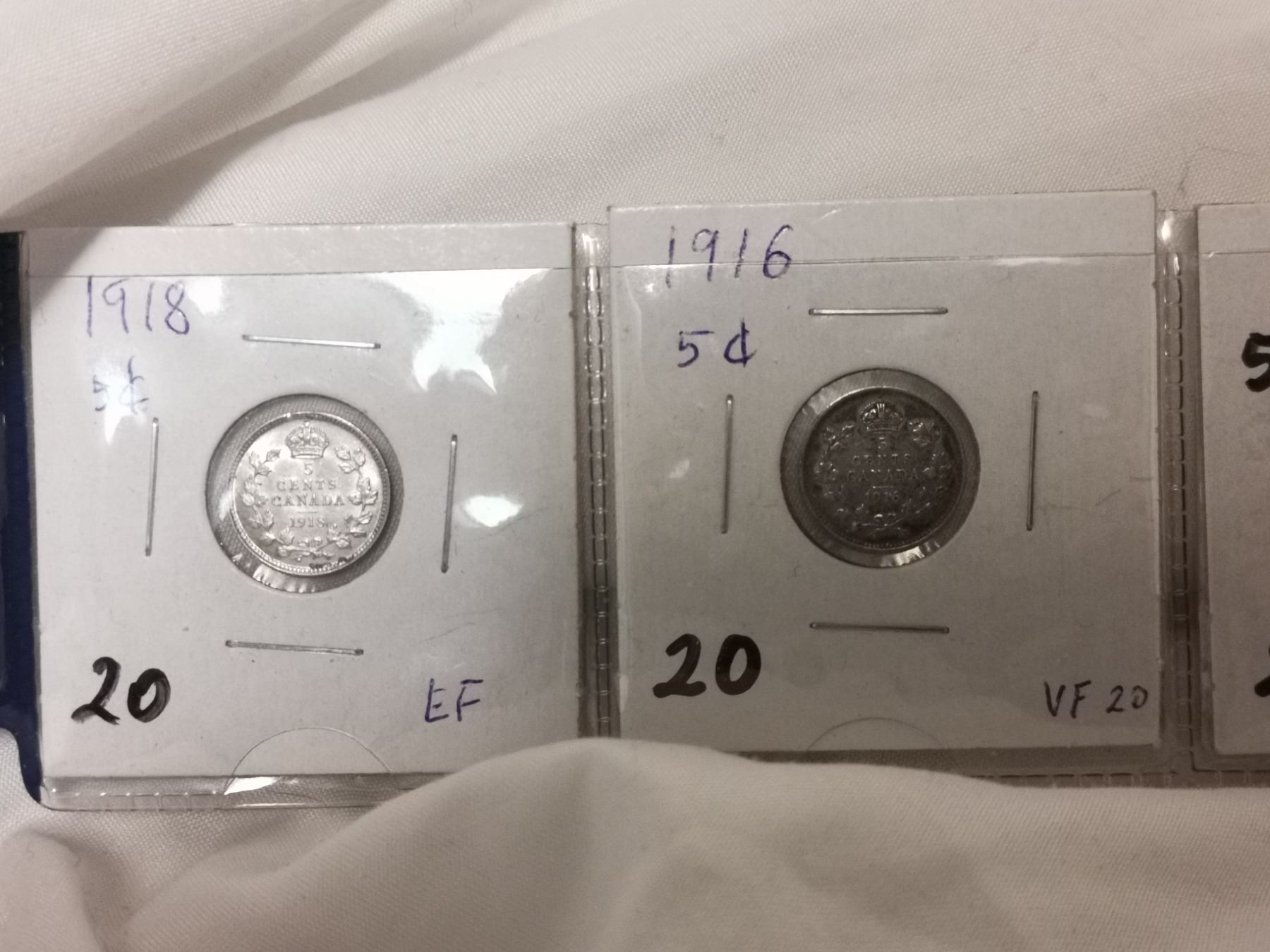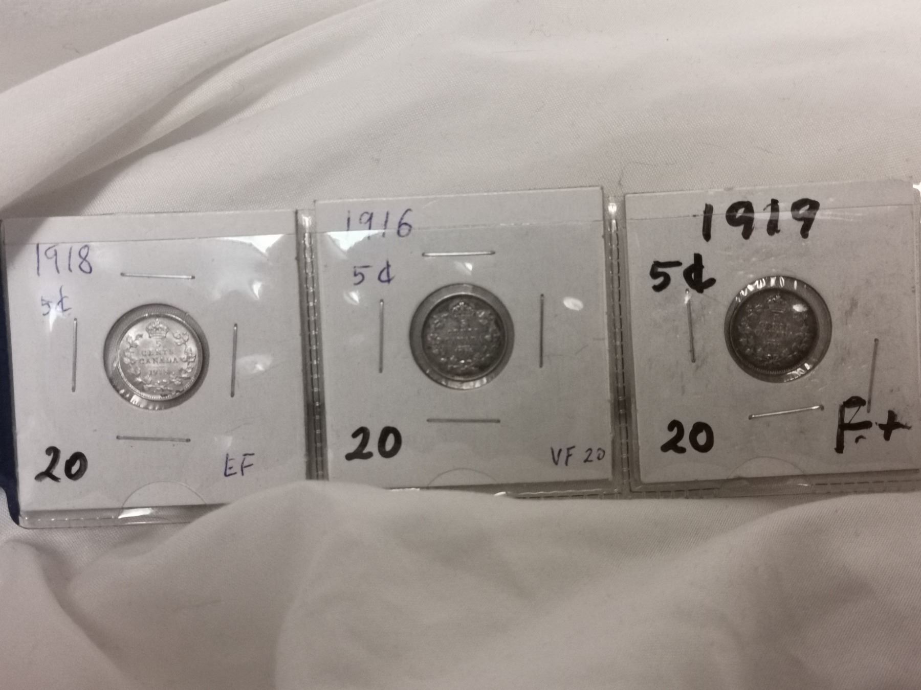 (3) Canada Silver 5 Cent Coins - 1916, 1918, 1919