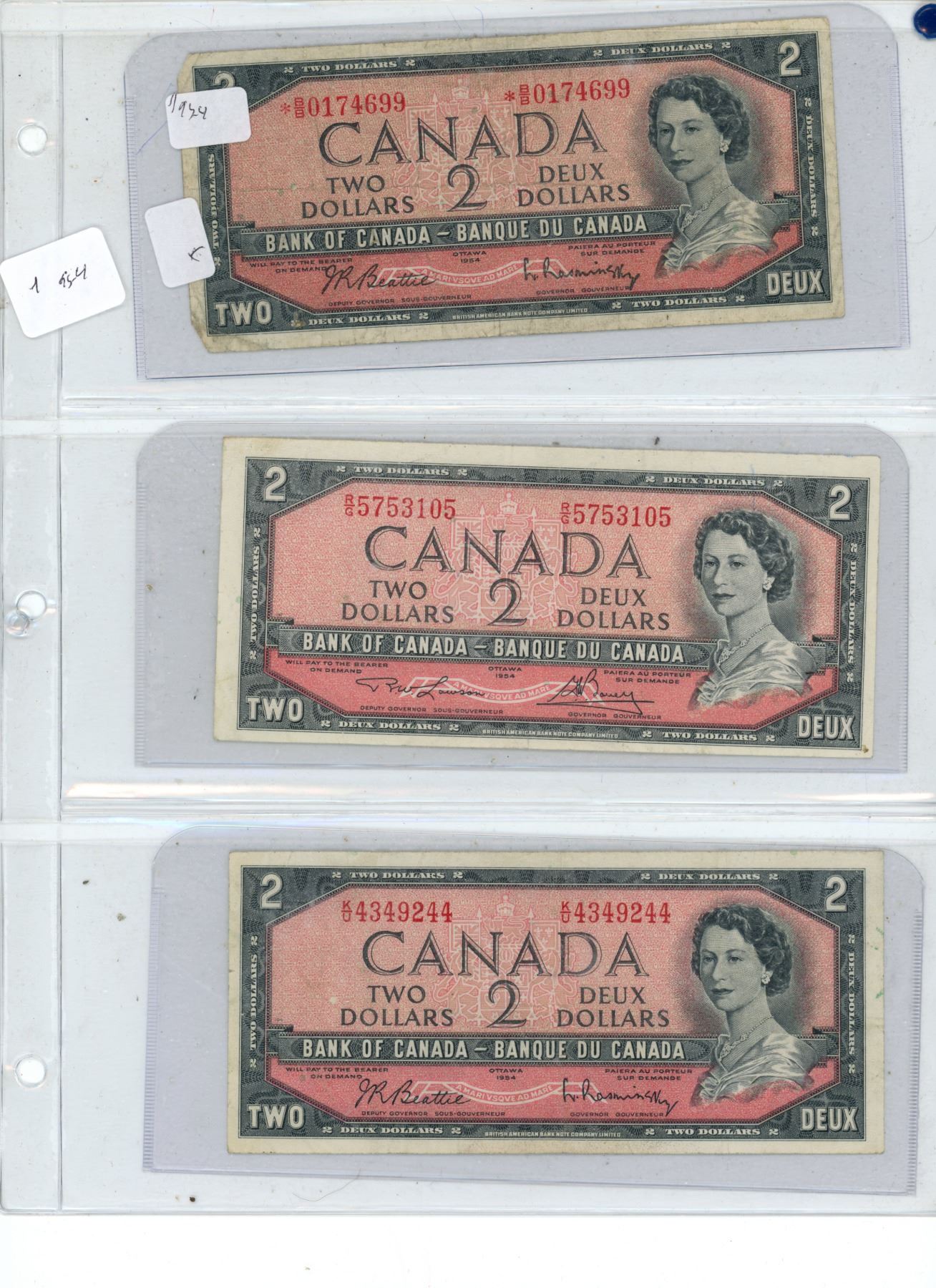 (3) Canadian 1954 2 Dollar Bills (0174699) (5753105) (4349244)