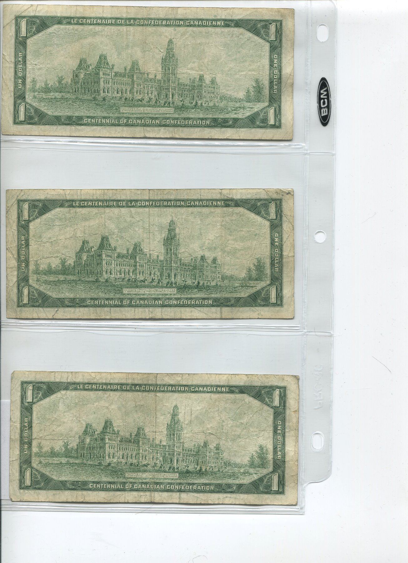 (3) Canadian 1967 Centennial one dollar bills