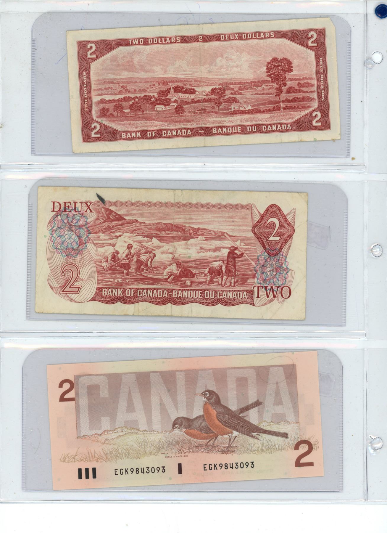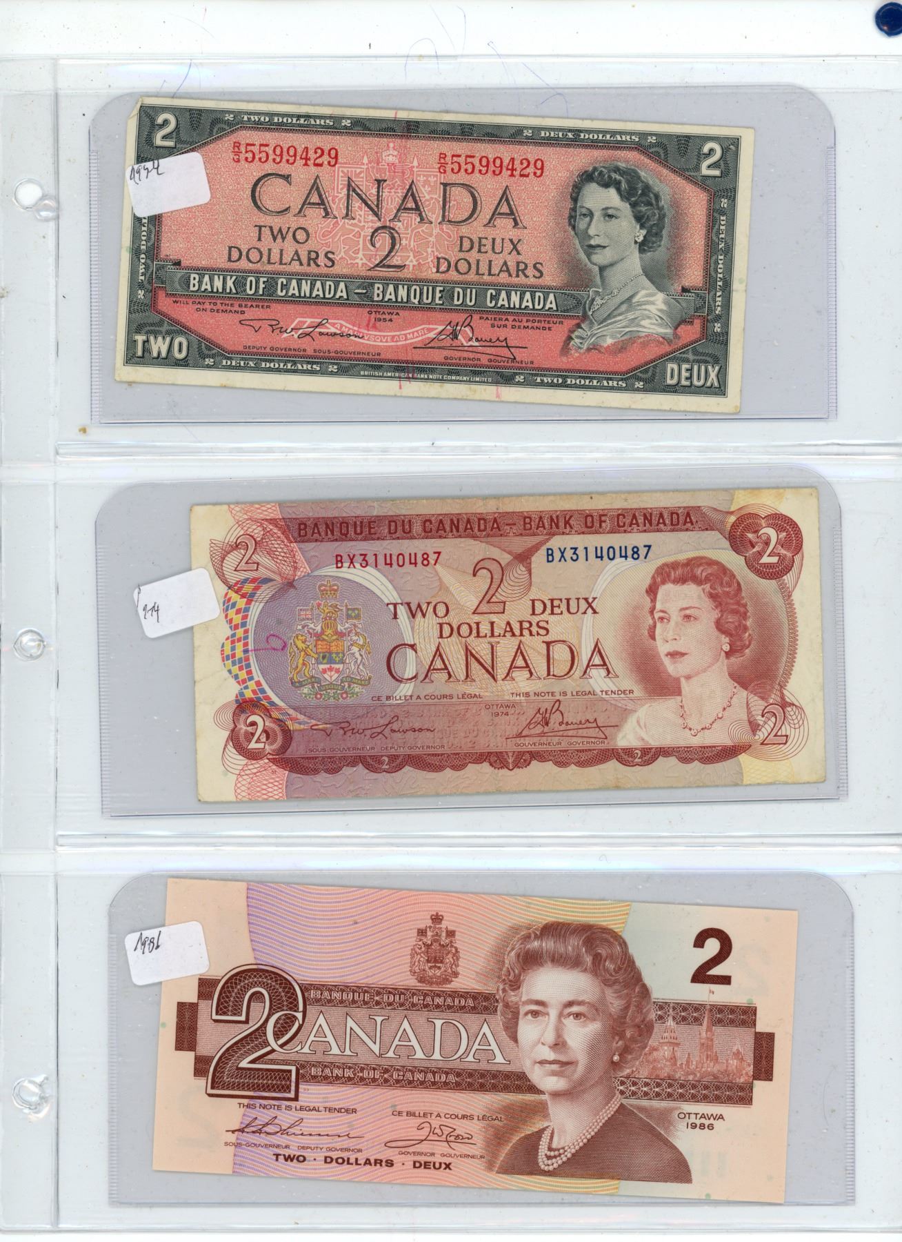 (3) Canadian 2 Dollar Bills (1954,1974,1986)