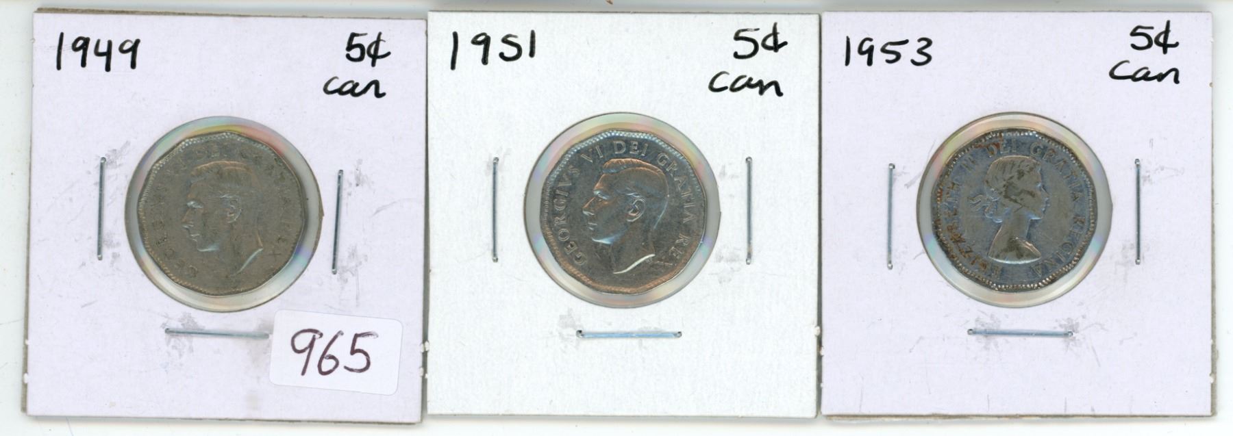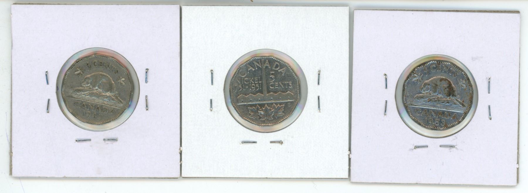 3 Canadian 5 cent coins - 1949, 1951, 1953