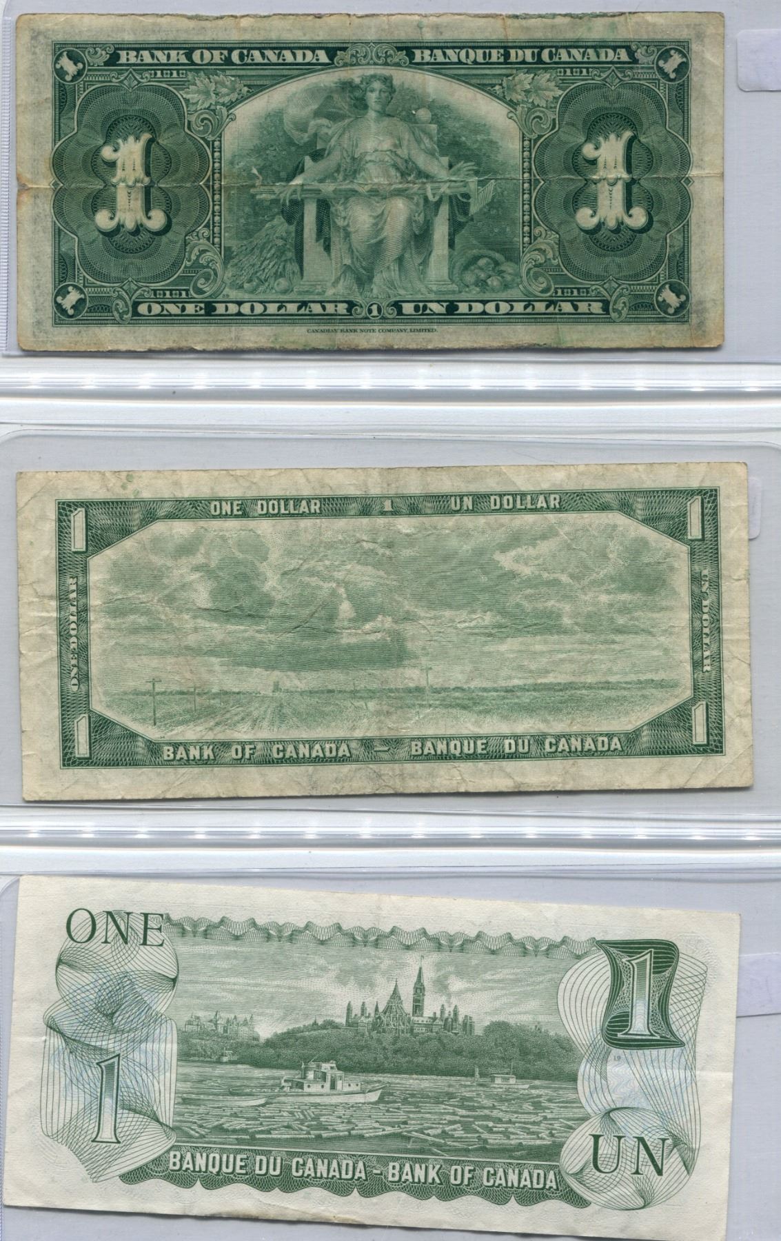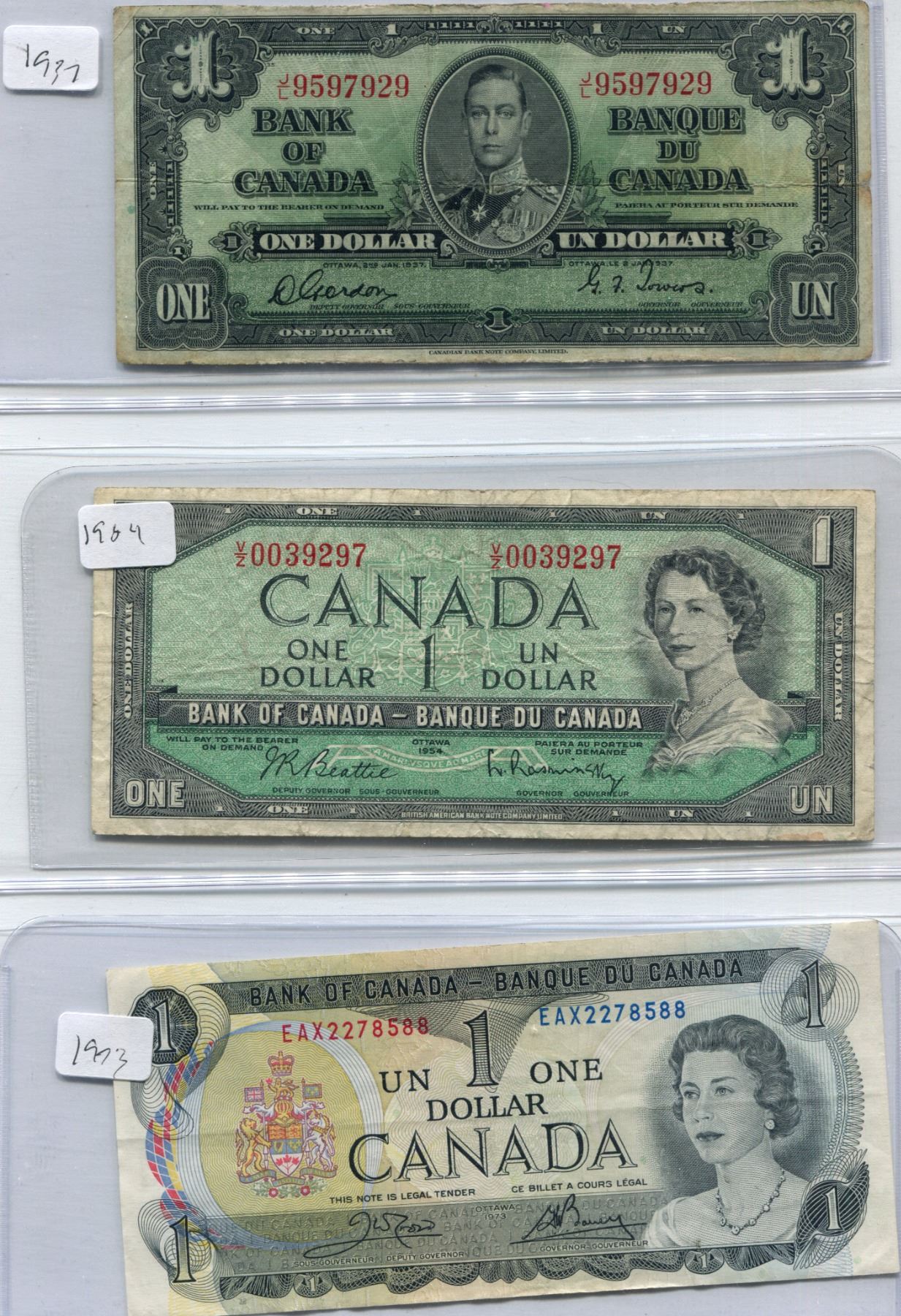 (3) Canadian One Dollar Bills 1937 + 1954 + 1973