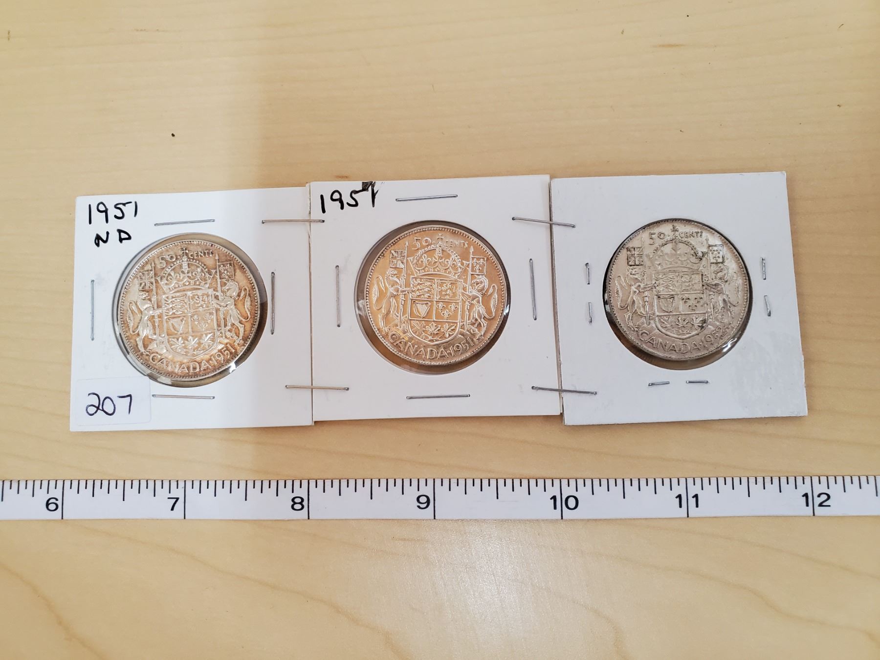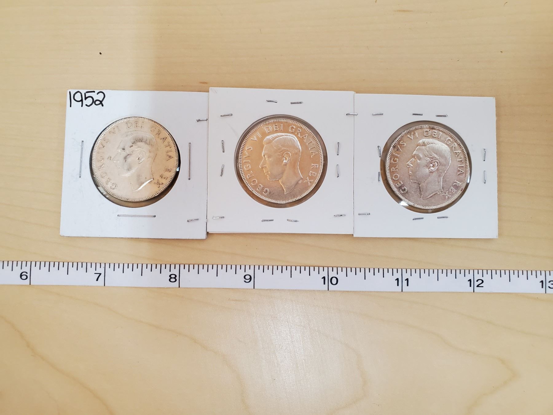 3 Canadian silver 50 cents (2 x 1951 VERY NICE, 1 x 1952)