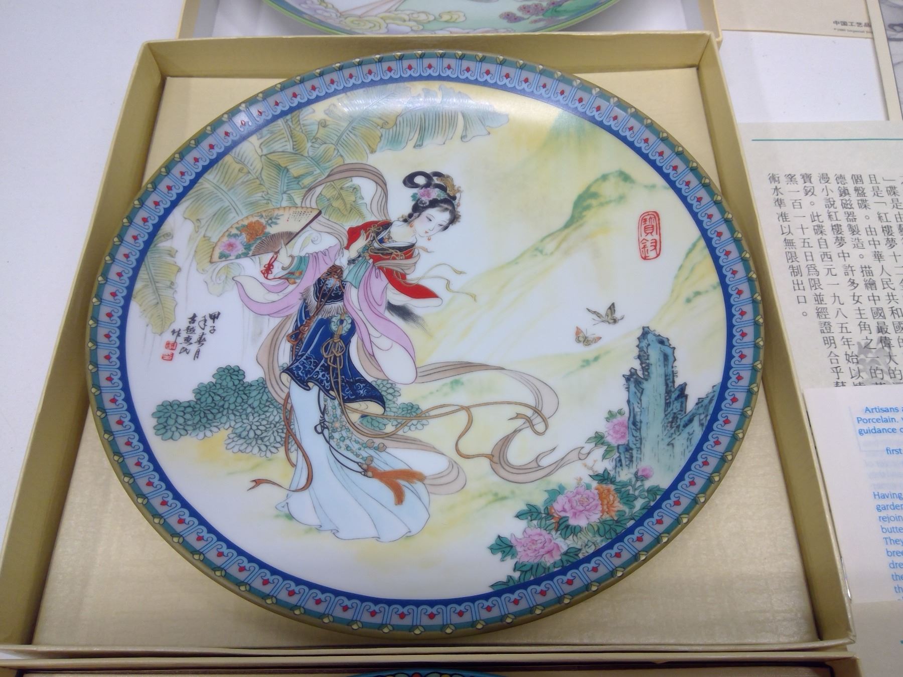 3 Chinese Collector's Art Plates - Lady White, Pao-Chai, and The Jade Belt Bridge